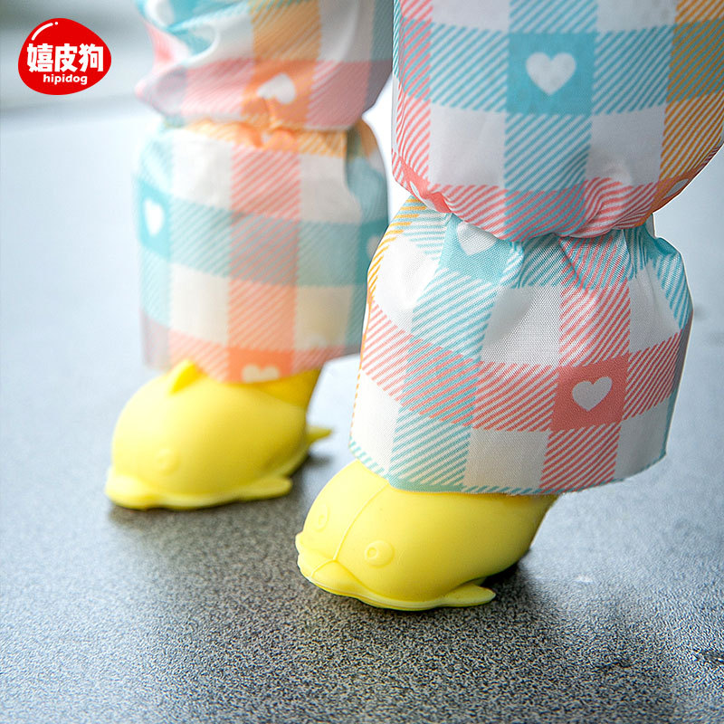 小狗狗雨衣中小型犬全包四脚雨衣时尚格纹反光条外出遛狗宠物衣服 投诉