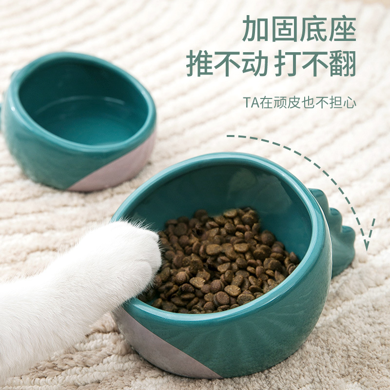 新款可爱恐龙碗陶瓷碗猫咪饮水粮食碗小狗狗碗小型犬猫猫宠物用品