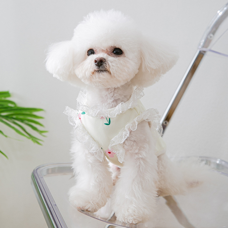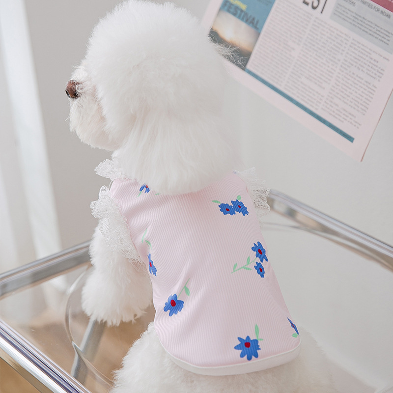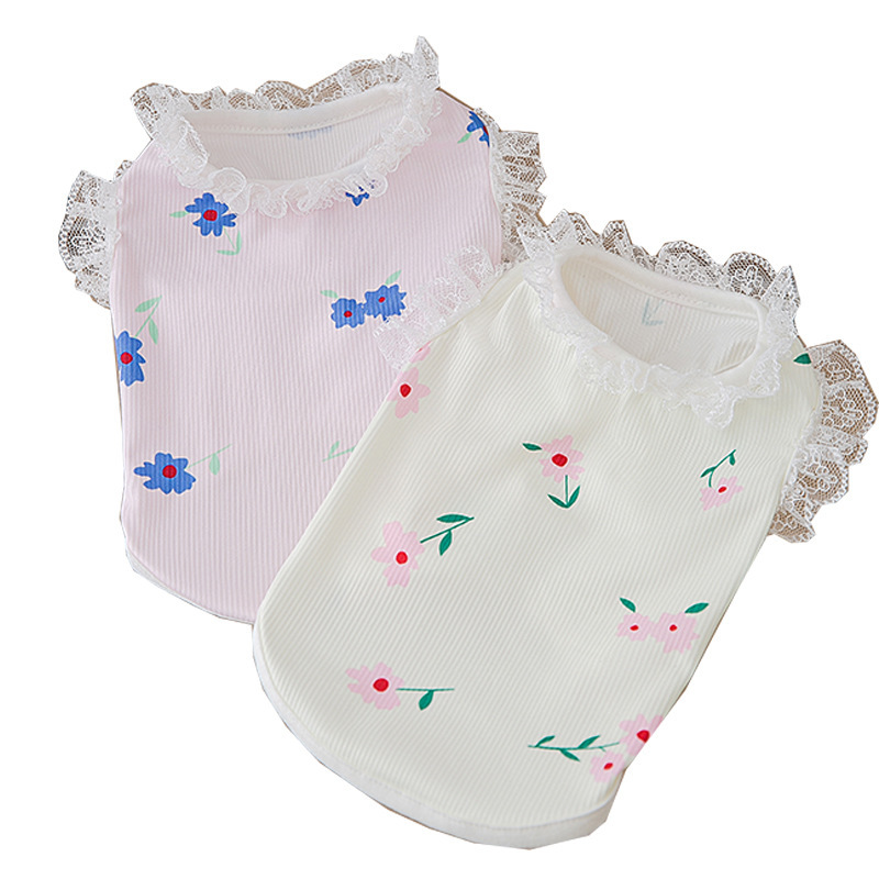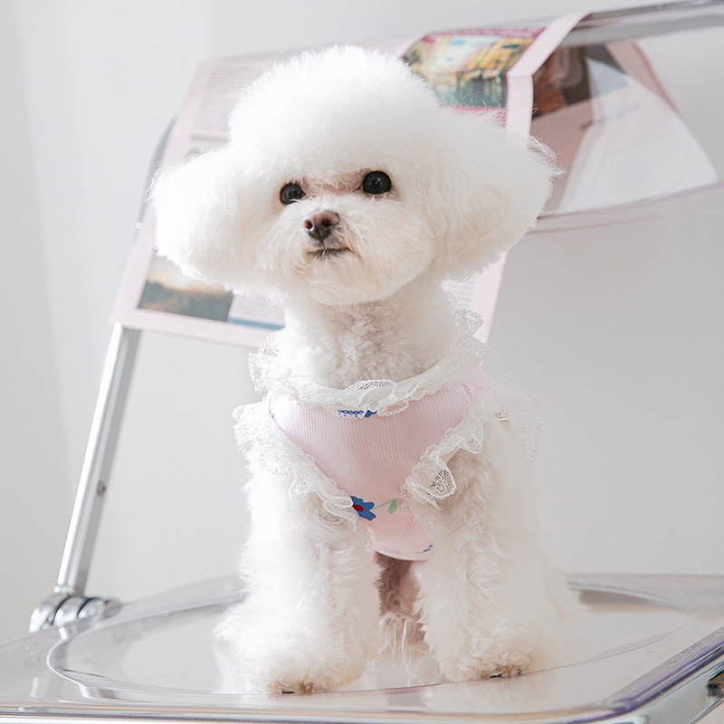 春秋薄款小狗狗背心猫咪吊带甜美风蕾丝立领T恤小狗服饰 宠物衣服
