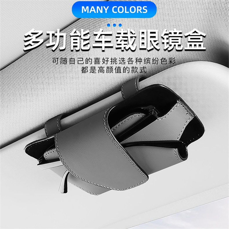 新款车载通用遮阳板眼镜袋车用简约遮阳板眼纳帕皮镜盒收纳包代发 投诉