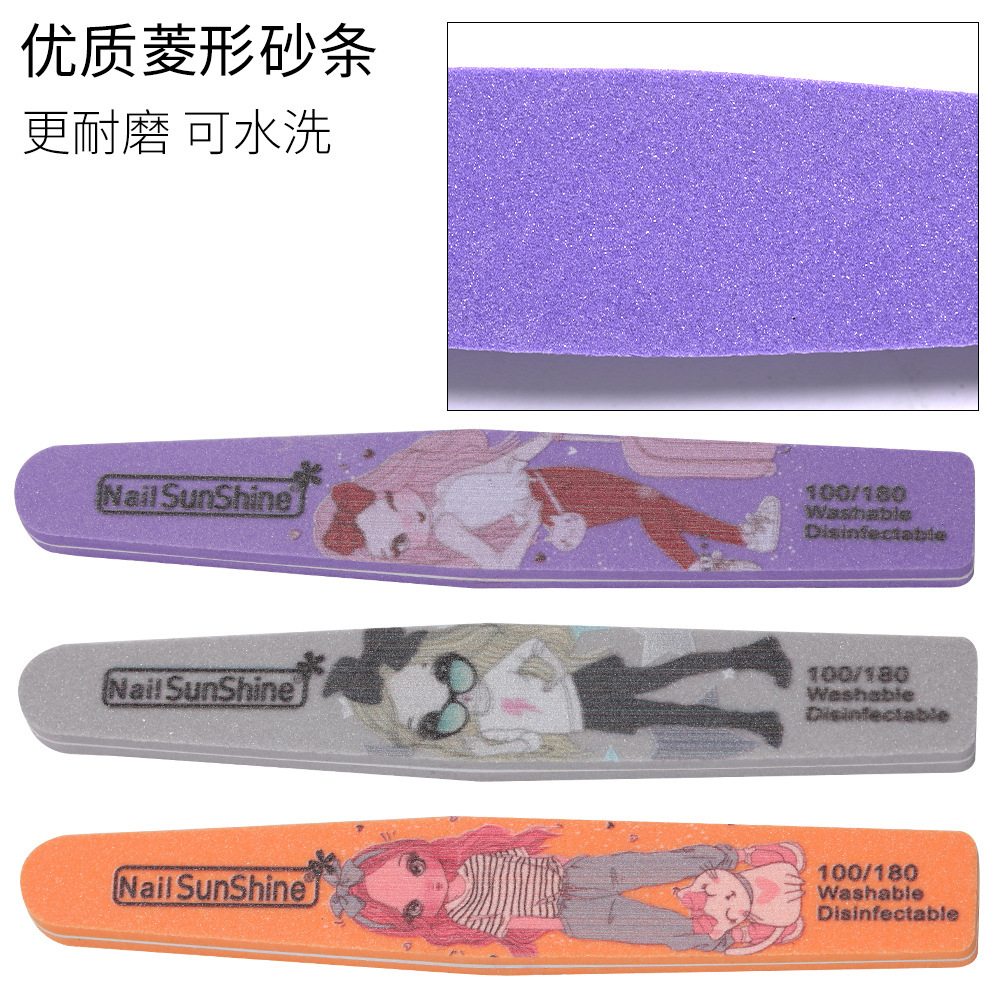 卡通女孩菱形海绵锉磨砂条美甲工具指甲锉双面修甲搓打磨指甲搓条