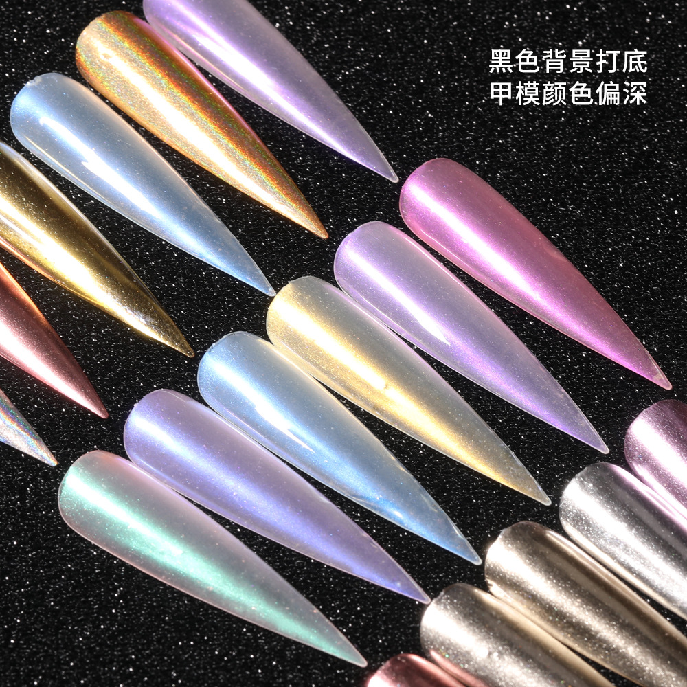 美甲固态魔镜粉 仙女粉盒装极光美甲闪粉镭射镜面魔镜粉