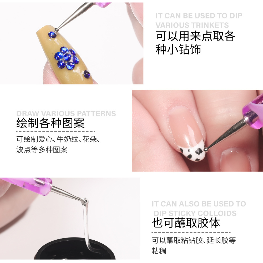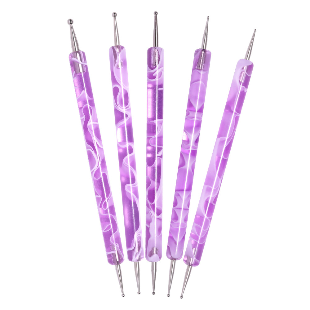 美甲亚克力紫色杆点花针双头点钻笔点画工具点花笔 美甲点钻笔5支