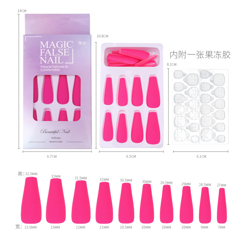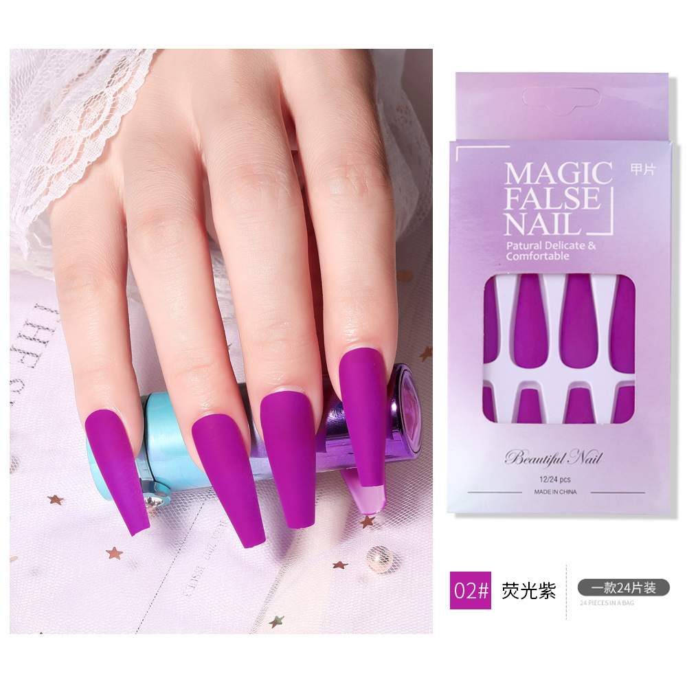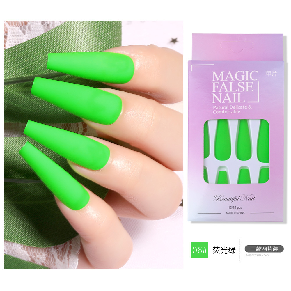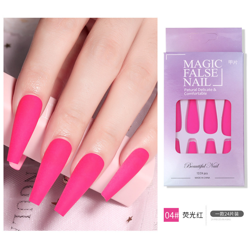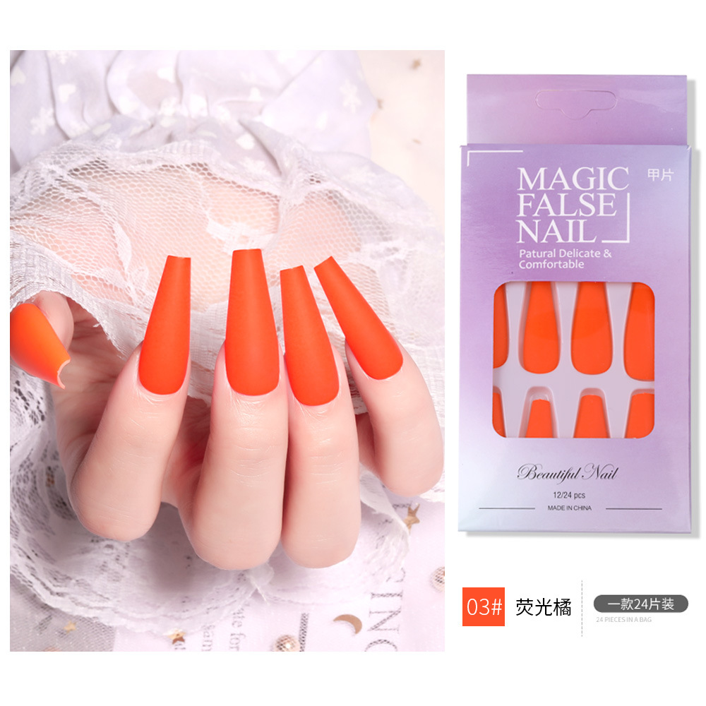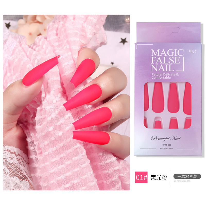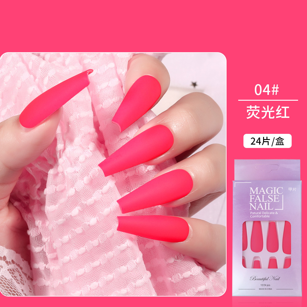Nail长款芭蕾荧光美甲贴片 穿戴甲哑光磨砂纯色假指甲片跨境款