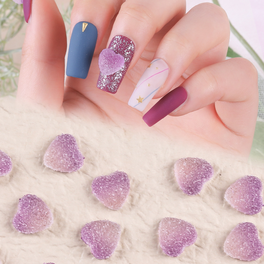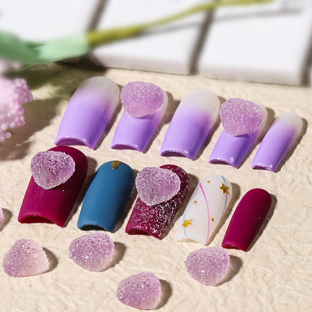 砂糖美甲钻 大颗粒立体渐变色美甲饰品磨砂爱心平底钻指甲配饰