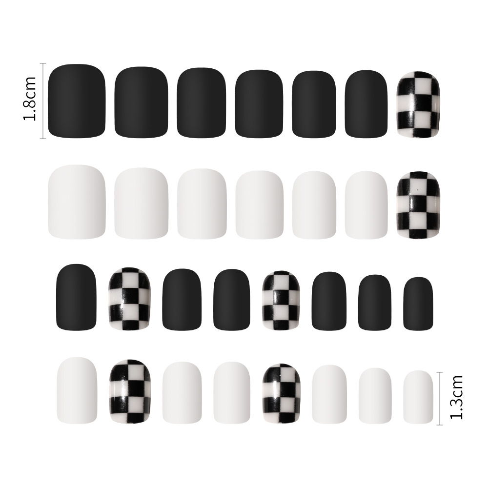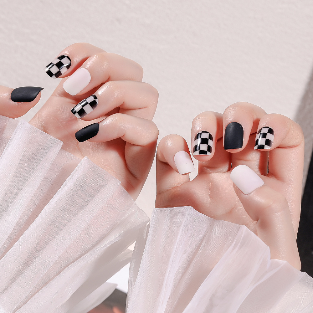 空气软甲成品穿戴甲 美甲甲片黑白格子磨砂假指甲批发美甲贴片 投诉