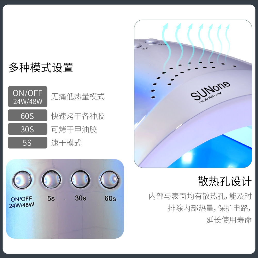 48W电镀炫彩SUNONE美甲灯阳光1号LED甲油胶烘干机 智能感应光疗灯 投诉