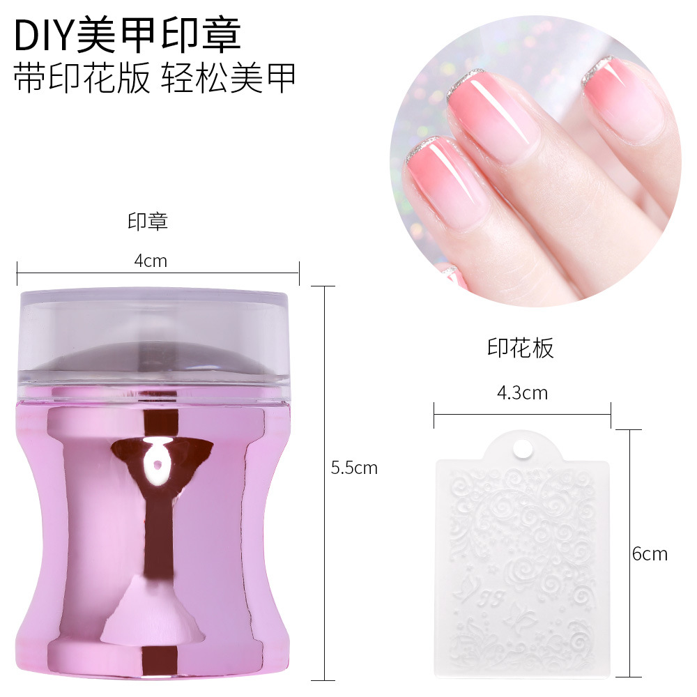 网红美甲法式透明硅胶印章刮板套装 紫色指甲彩绘印花油转印工具