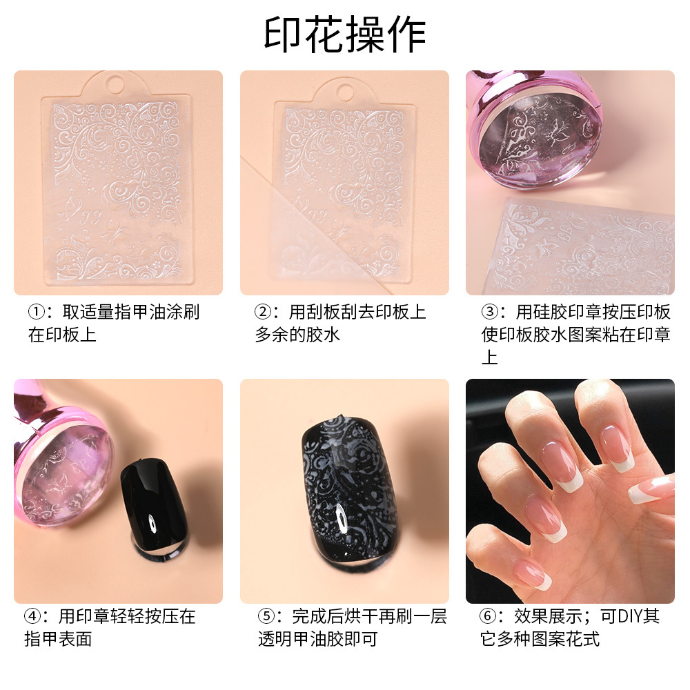 网红美甲法式透明硅胶印章刮板套装 紫色指甲彩绘印花油转印工具 投诉