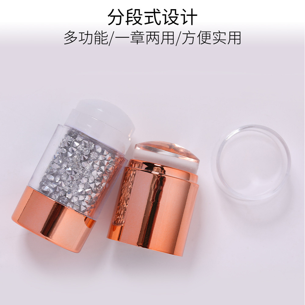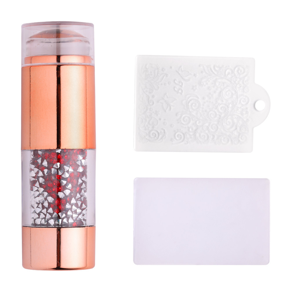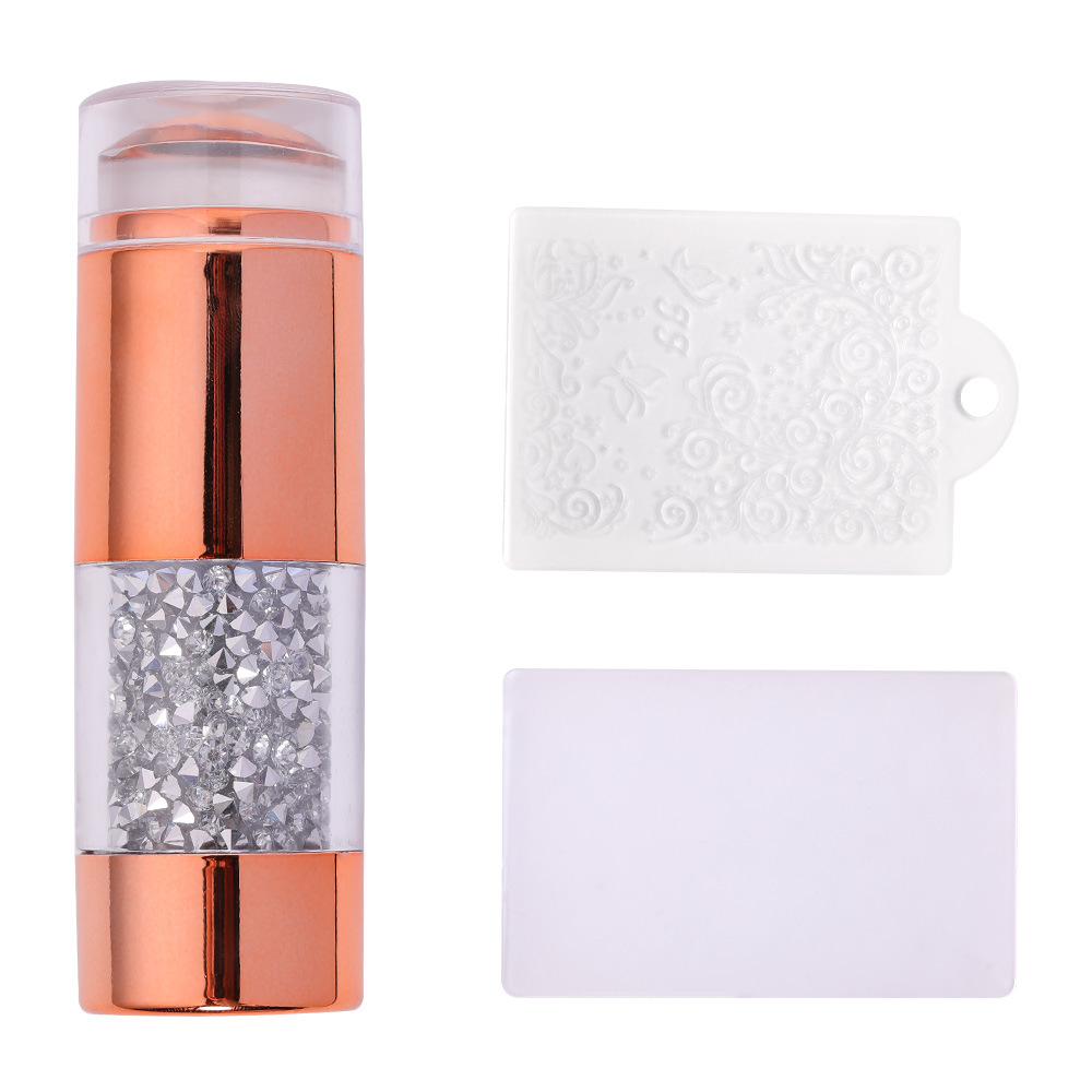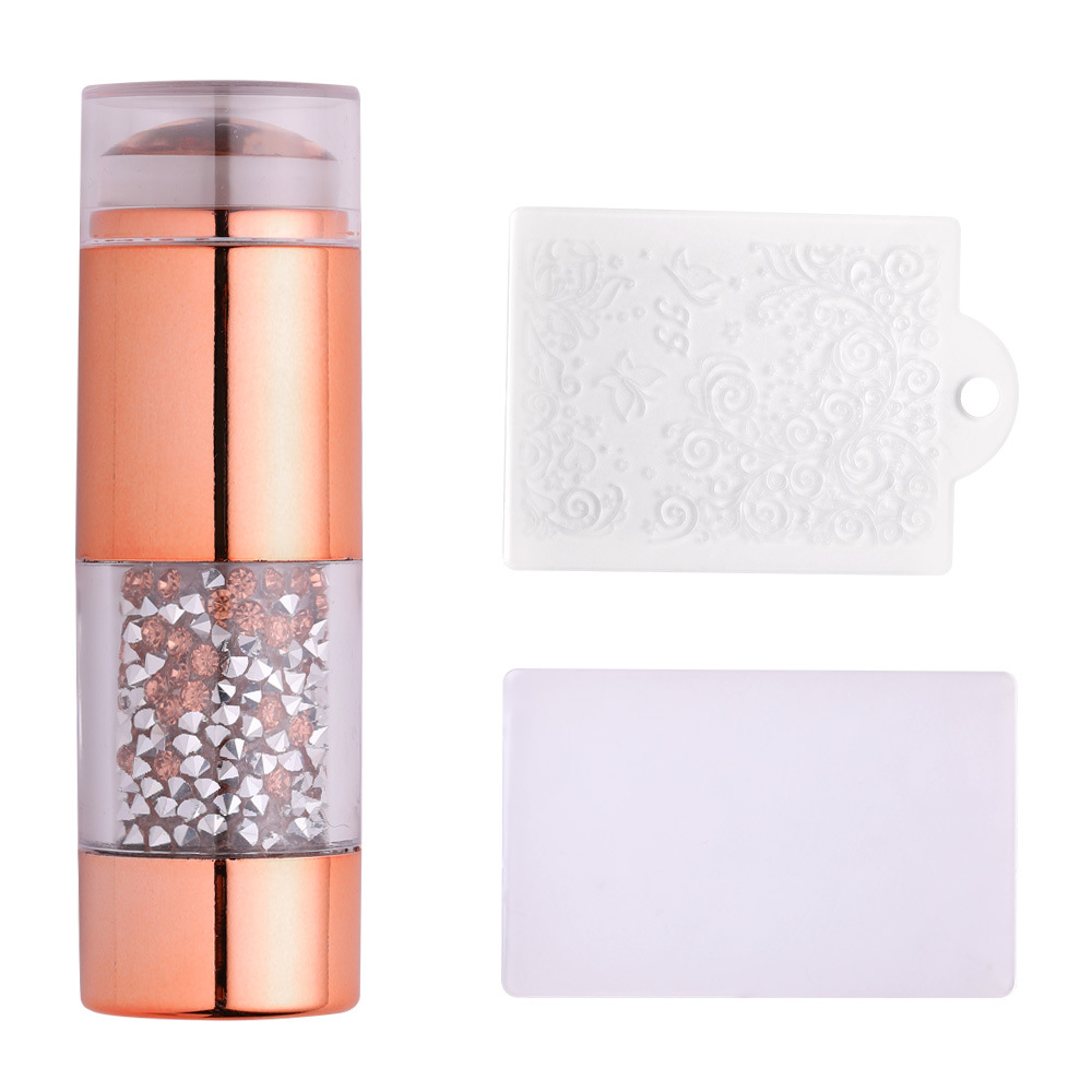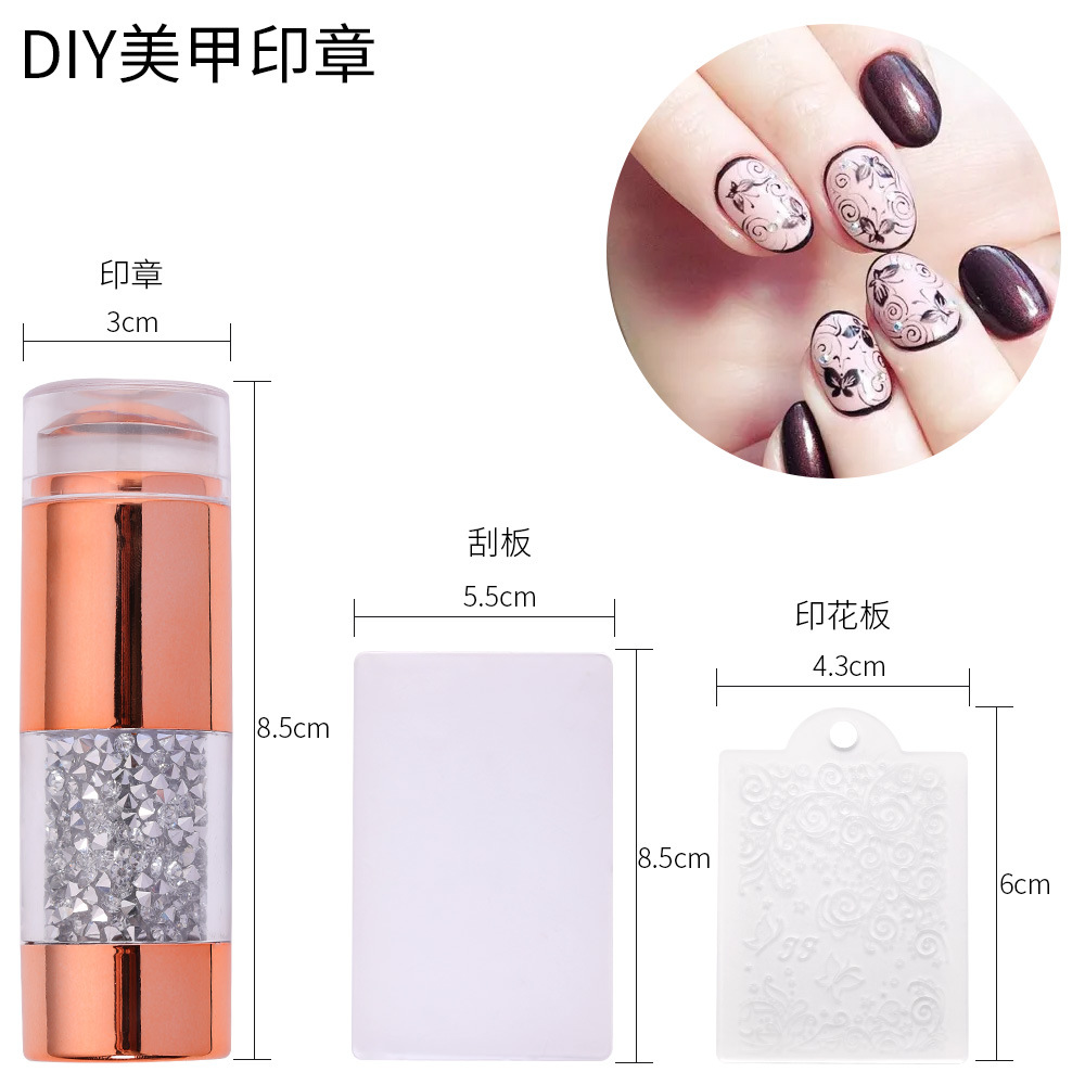 跨境新款美甲硅胶印章 电镀手柄印花板工具双头法式印章刮板套装