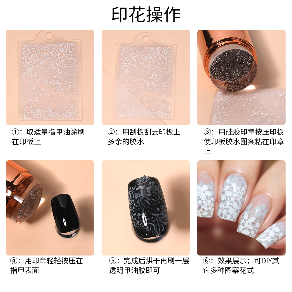 跨境新款美甲硅胶印章 电镀手柄印花板工具双头法式印章刮板套装 投诉