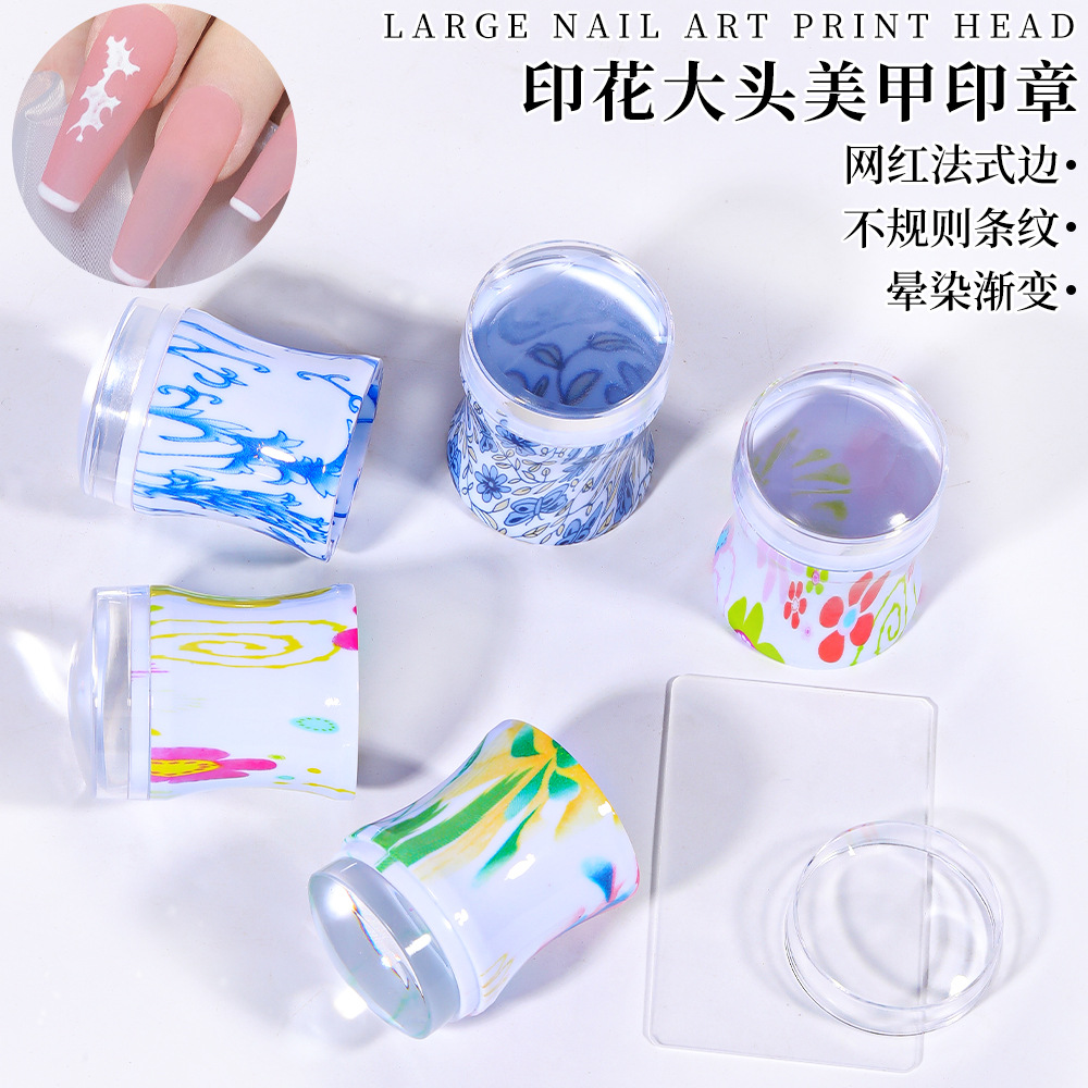美甲用品彩绘美甲印章3.8CM硅胶头DIY创意中国风印章指甲印花工具