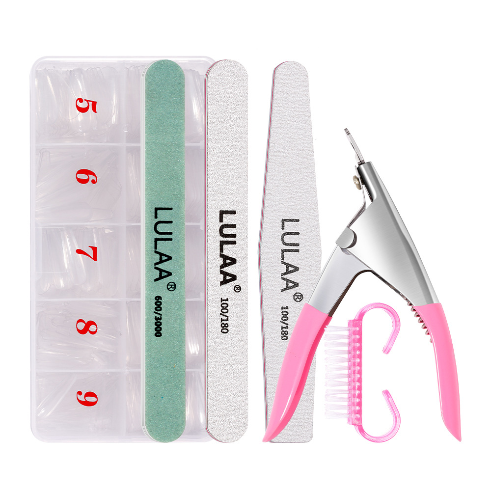 跨境500片透明甲片套装 修甲挫条工具打磨指甲锉假指甲美甲套装