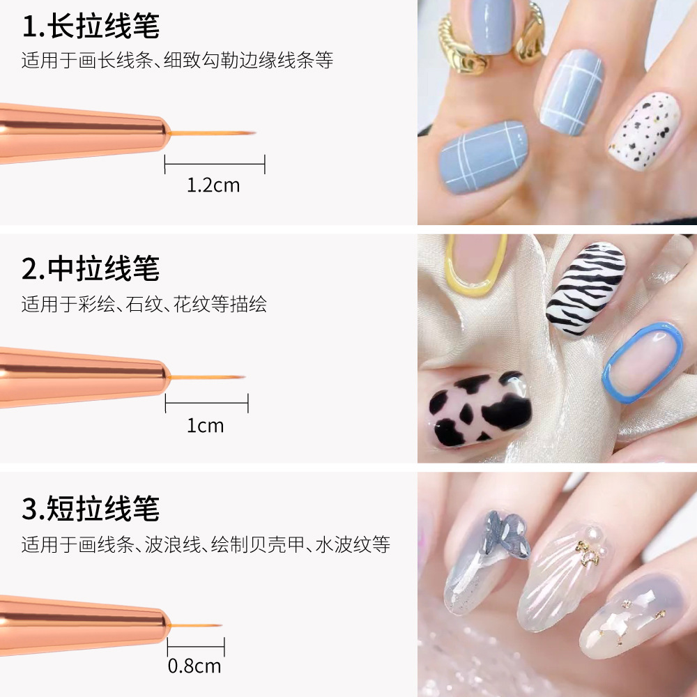 日系美甲拉线笔3支套装玫瑰金彩绘勾线笔刷电镀杆拉丝画花笔批发 投诉