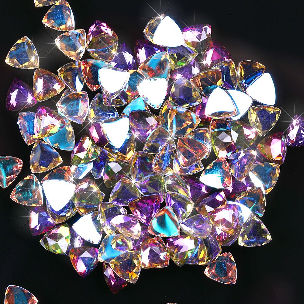 网红三角形美甲钻立体指甲配饰 极光幻彩美甲饰品批发超闪平底钻 投诉