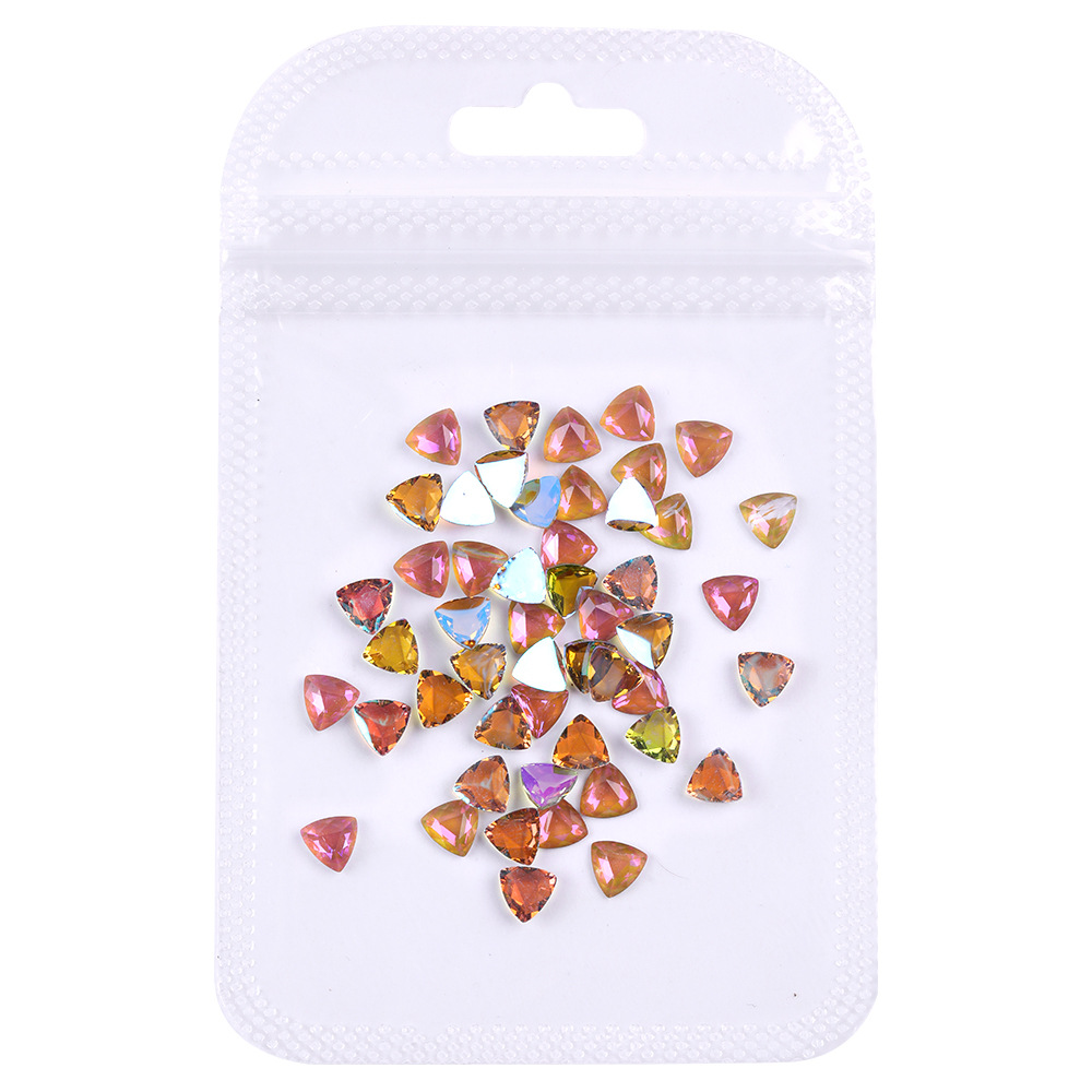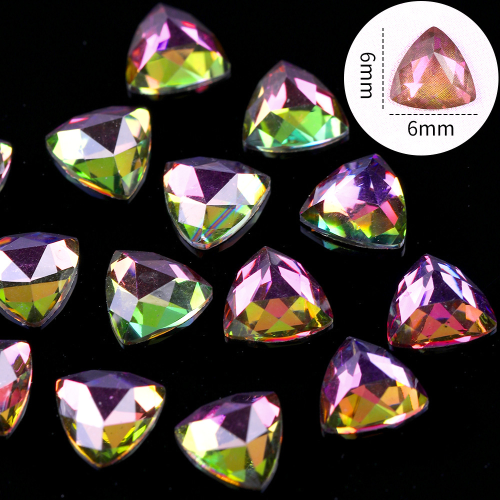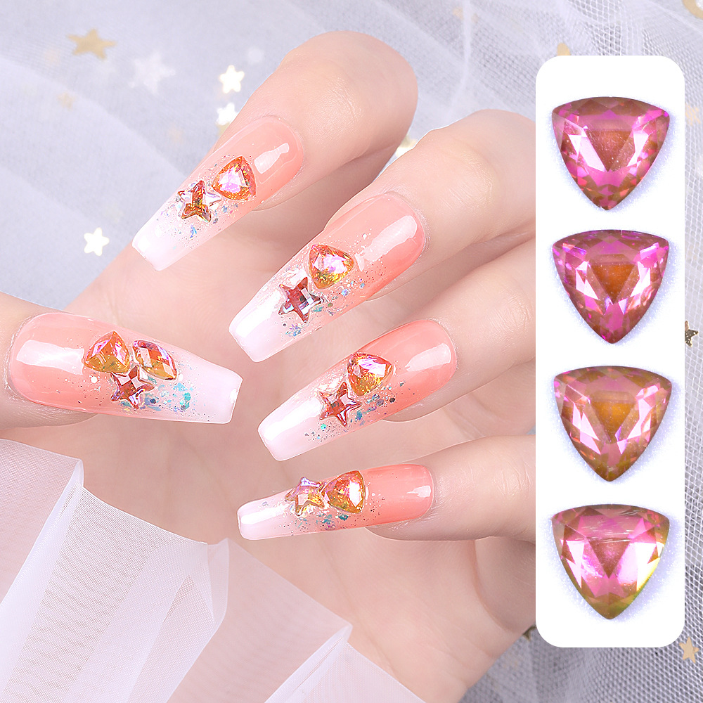 网红三角形美甲钻立体指甲配饰 极光幻彩美甲饰品批发超闪平底钻