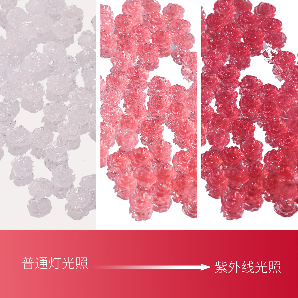 日系光感变色美甲钻 山茶花立体冰透清新光变指甲美甲钻饰品批发 投诉