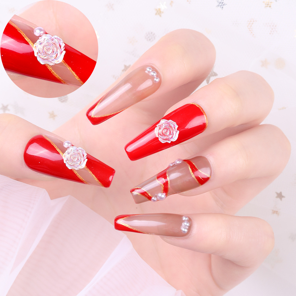 网红款美甲钻 山茶花饰品树脂钻指甲装饰极光幻彩立体花朵指甲钻