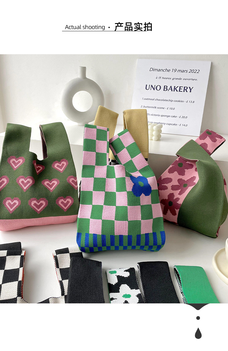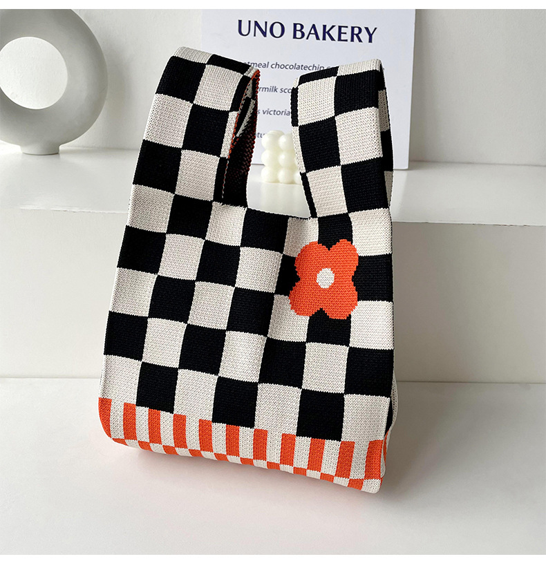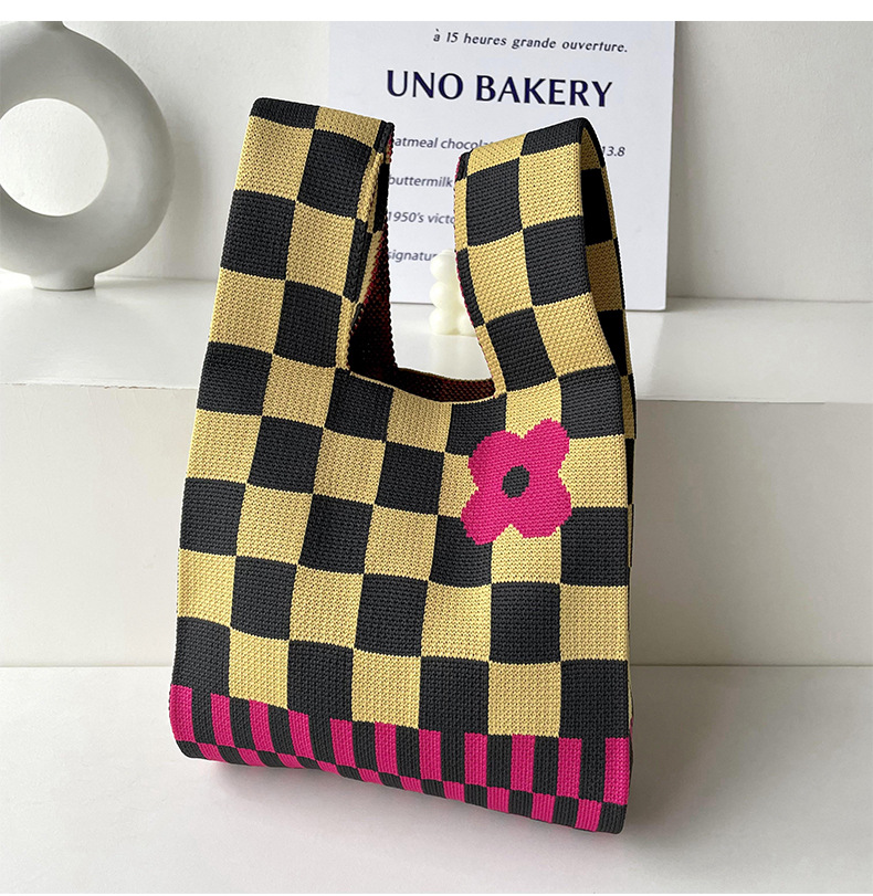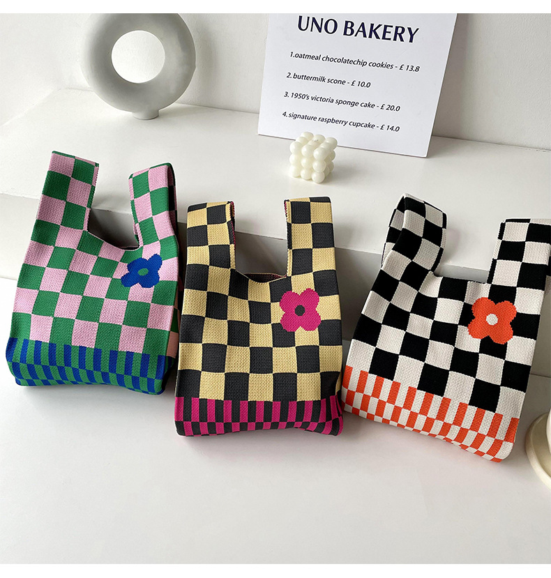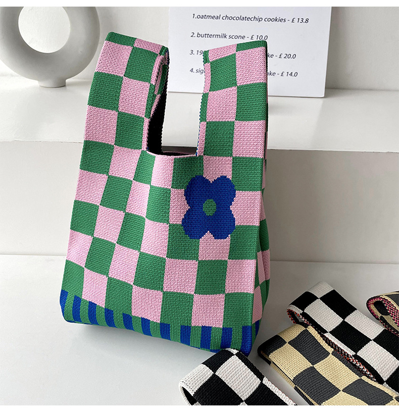 包包女韩版小众设计棋盘格小花针织手提包百搭出行腋下包手拎包潮