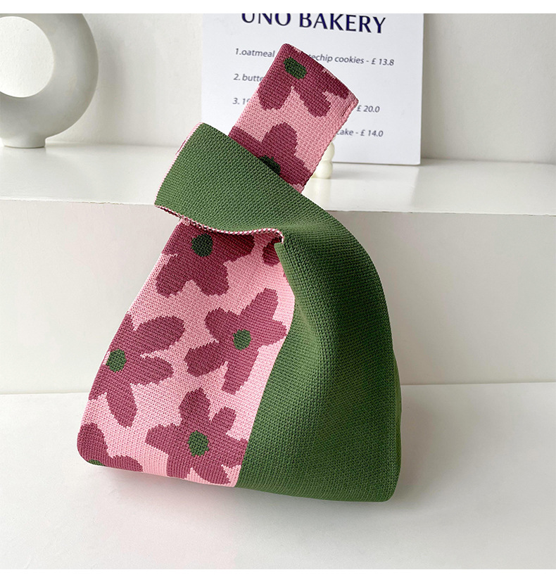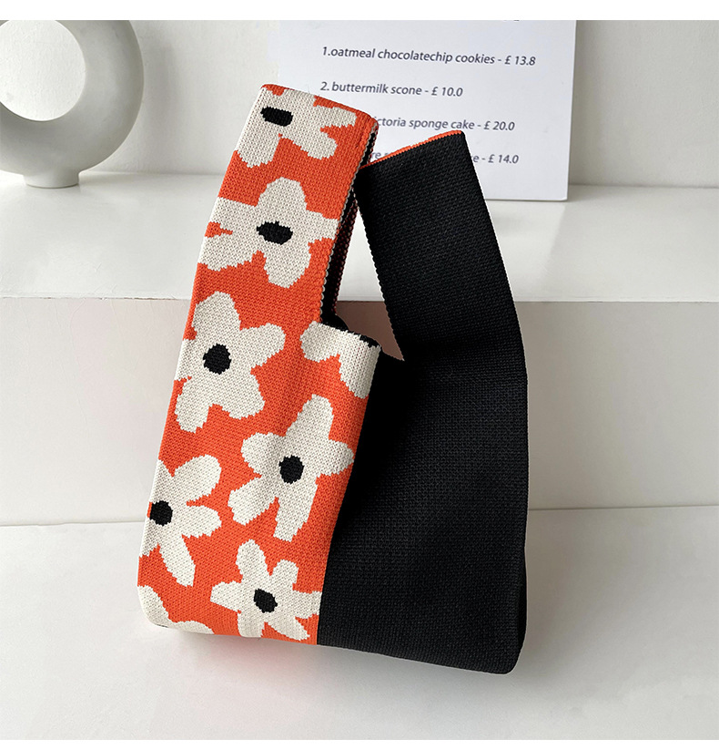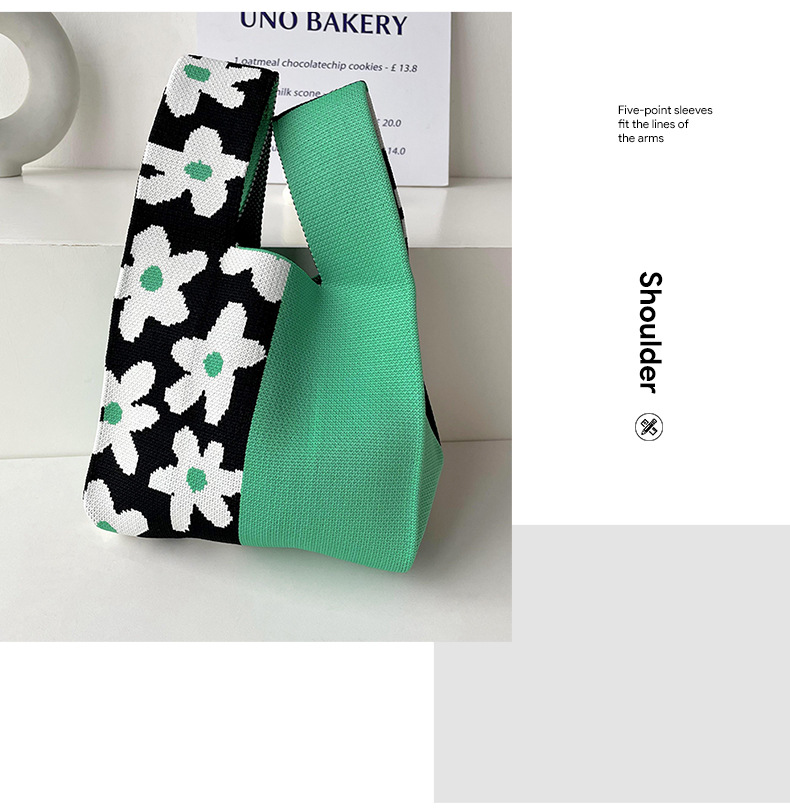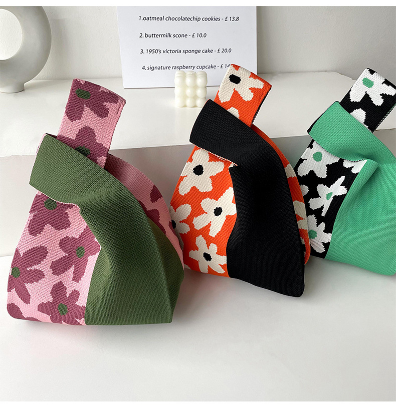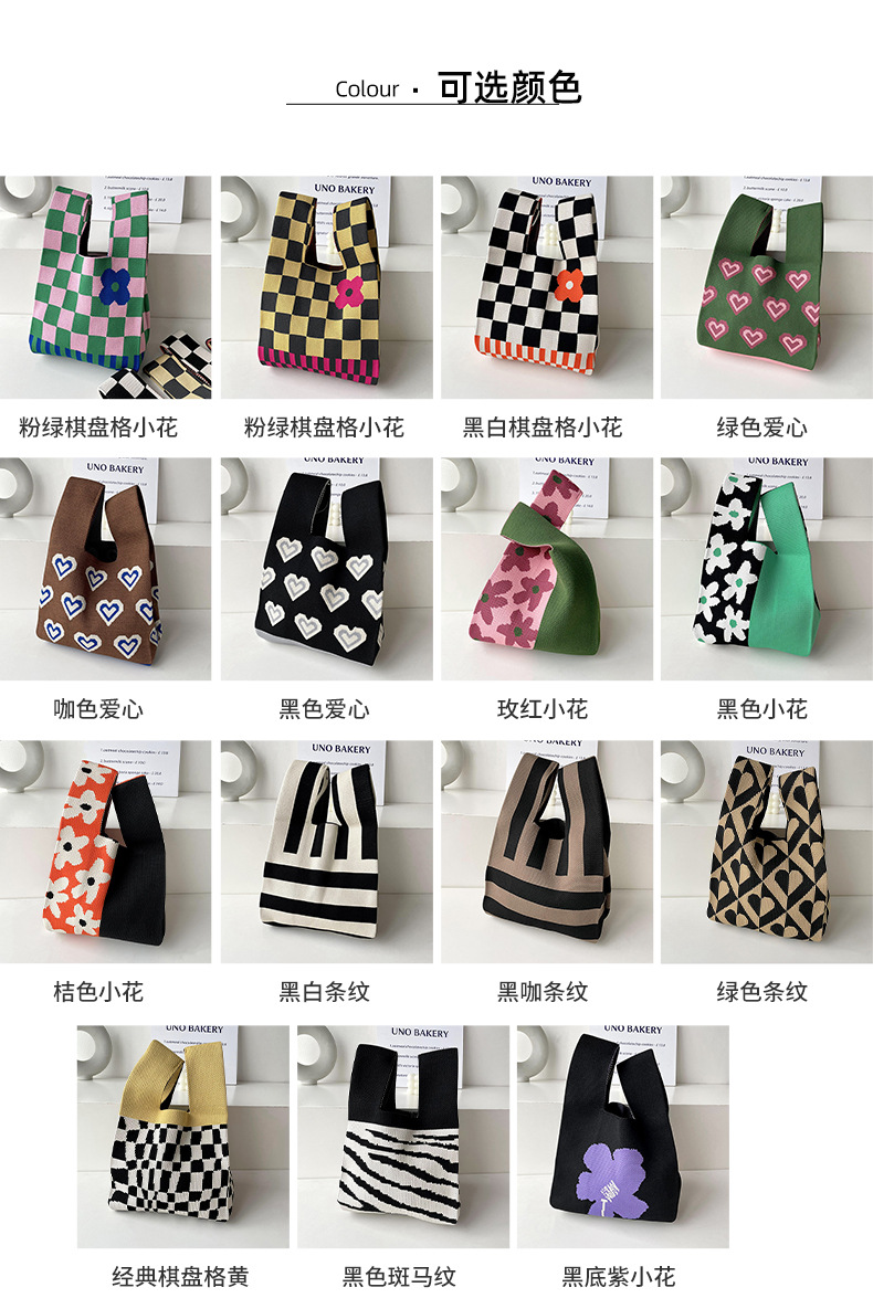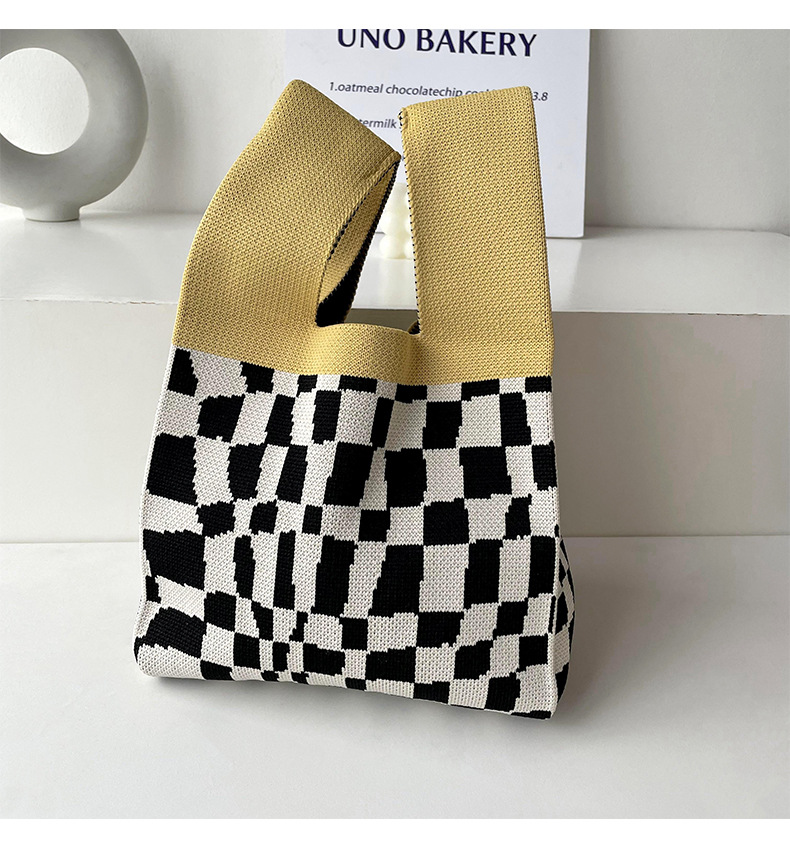 包包女韩版小众设计棋盘格小花针织手提包百搭出行腋下包手拎包潮