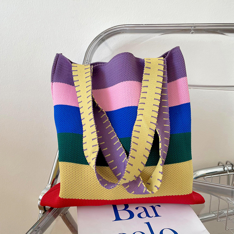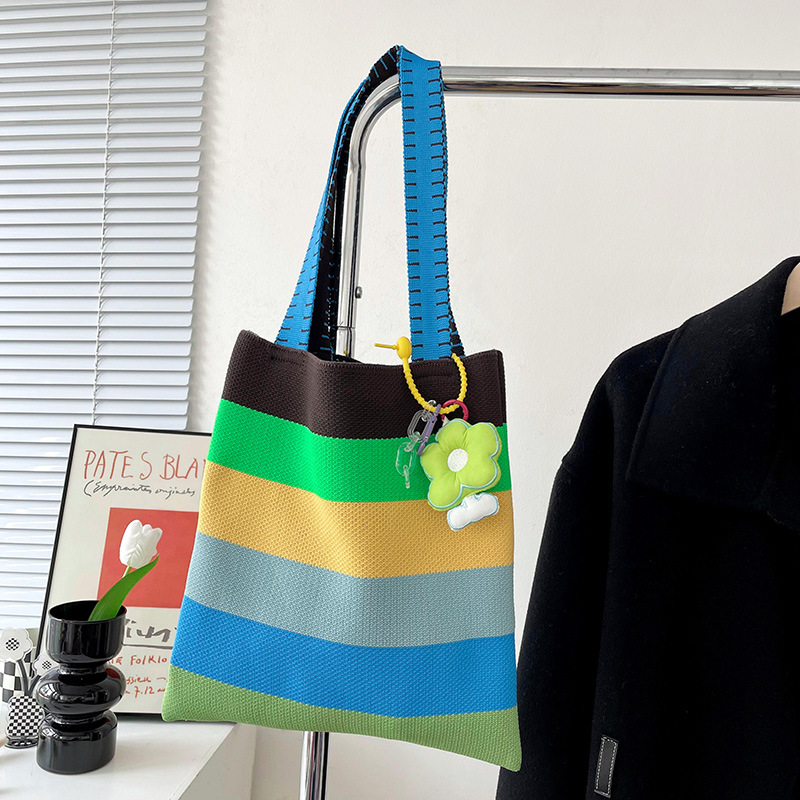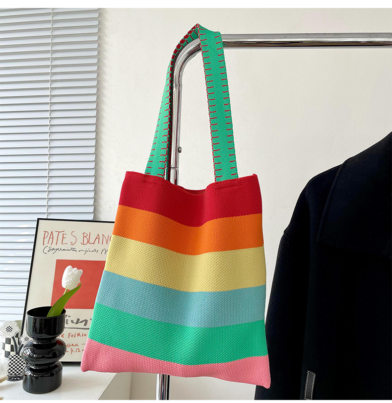 赵露思同款包包女秋冬新款韩版百搭彩虹条纹单肩包出街休闲手提包
