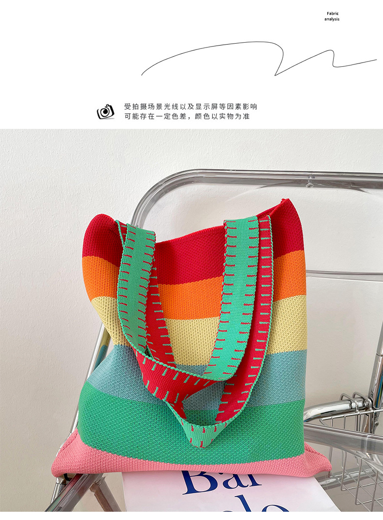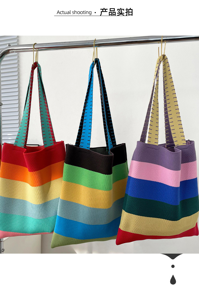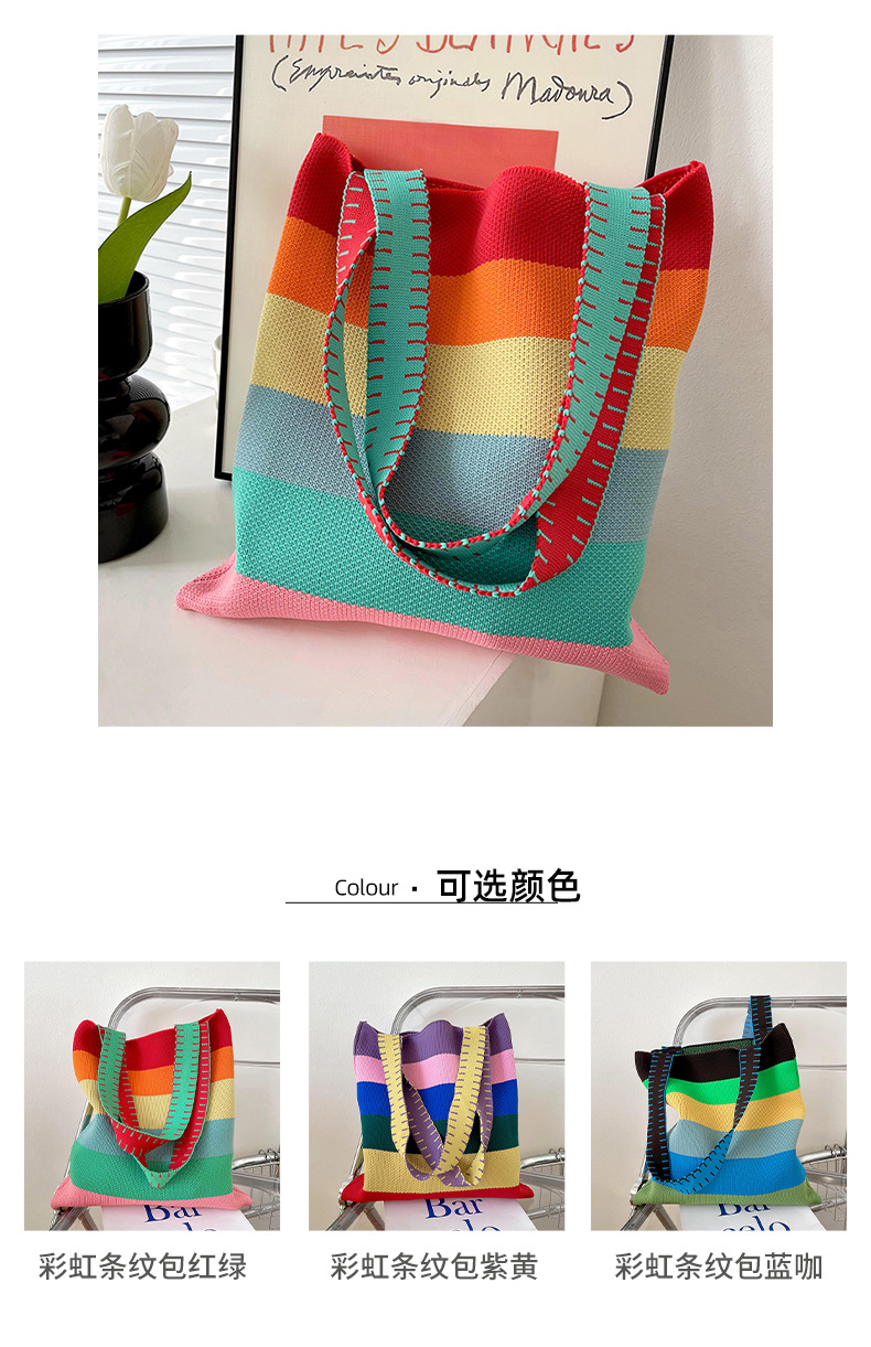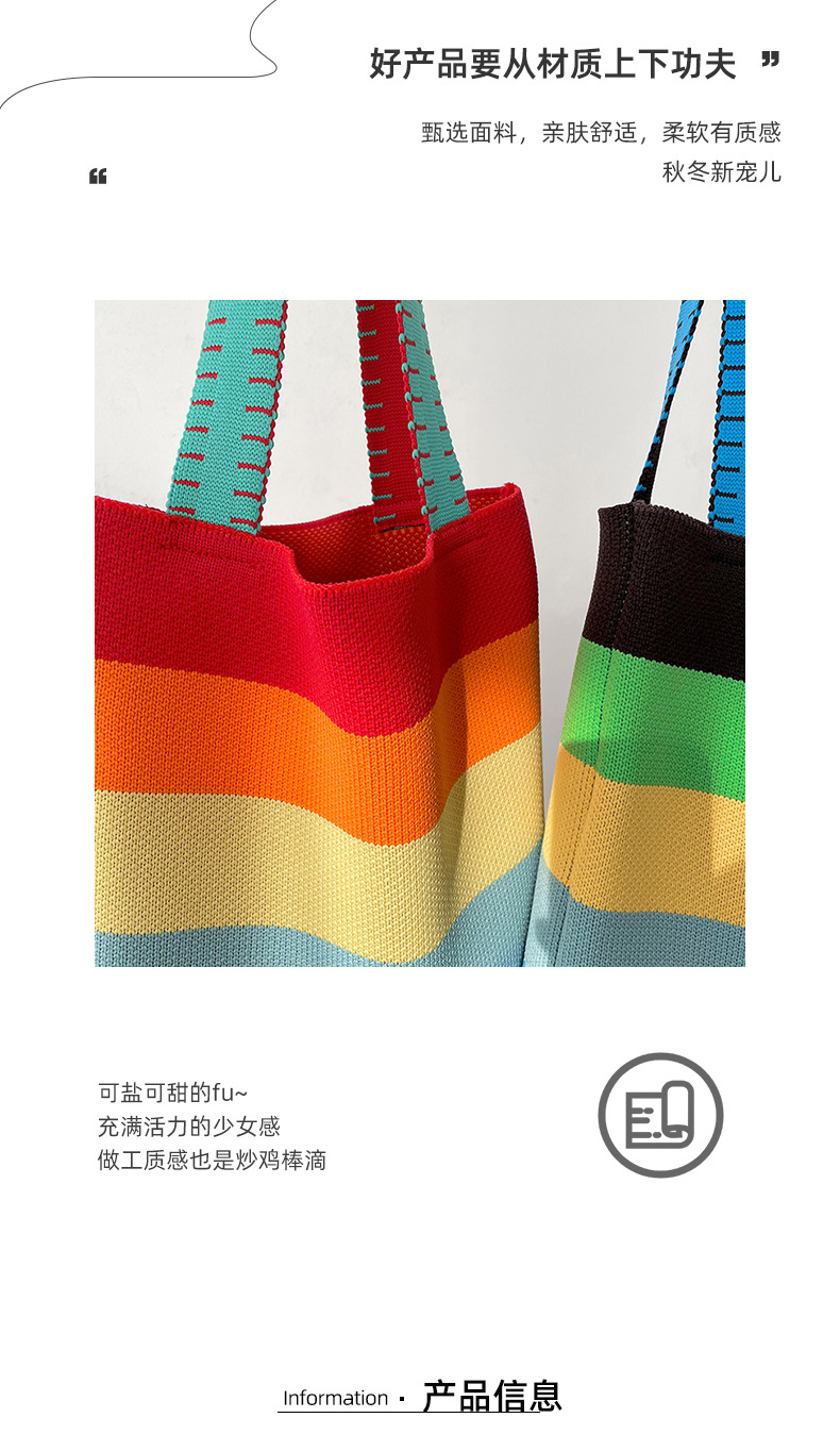 赵露思同款包包女秋冬新款韩版百搭彩虹条纹单肩包出街休闲手提包 投诉