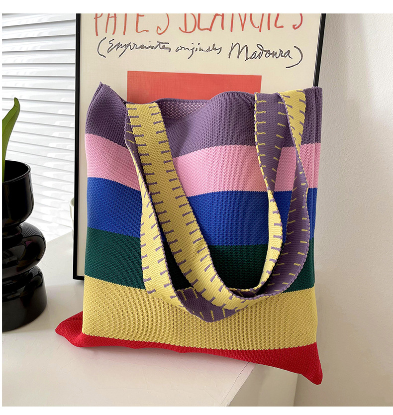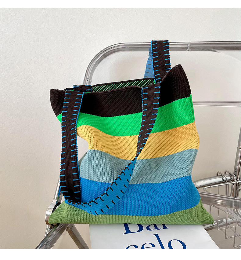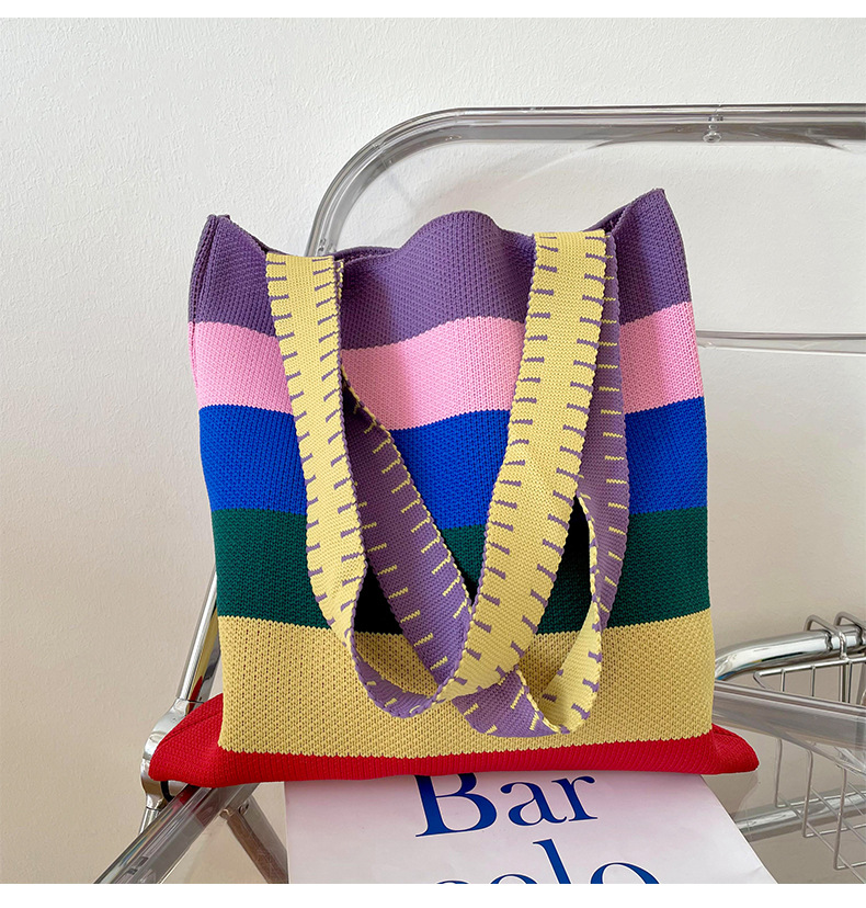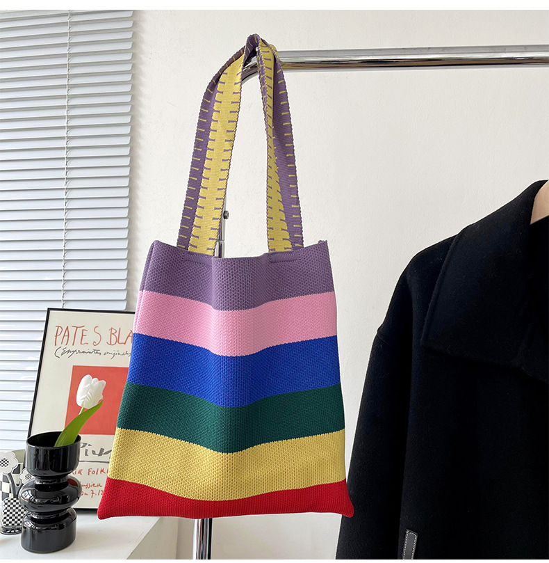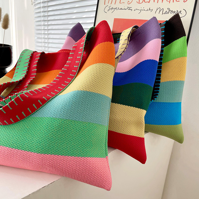 赵露思同款包包女秋冬新款韩版百搭彩虹条纹单肩包出街休闲手提包 投诉