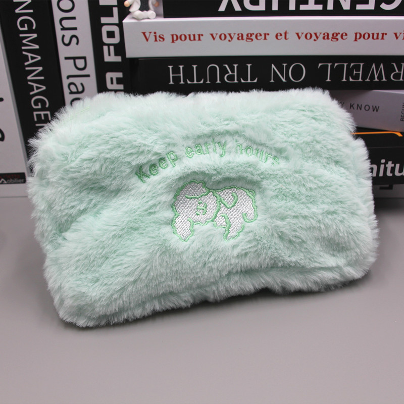 韩国简约可爱ins毛绒绒化妆包云朵笑脸小熊洗漱手拿包化妆收纳包