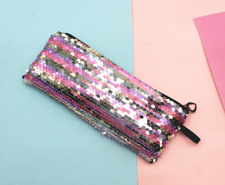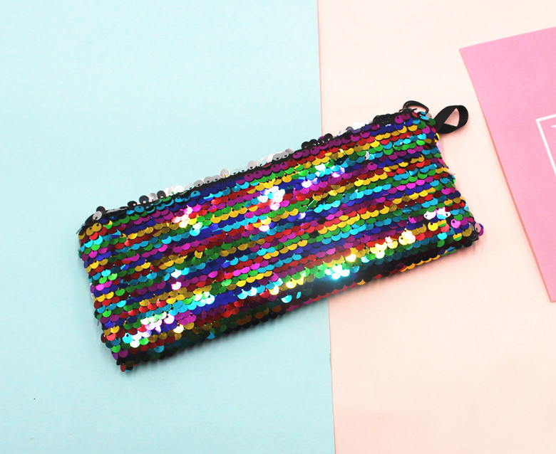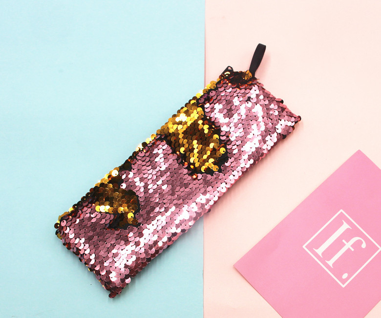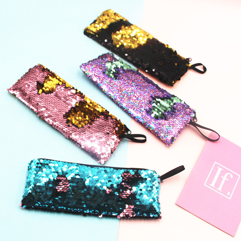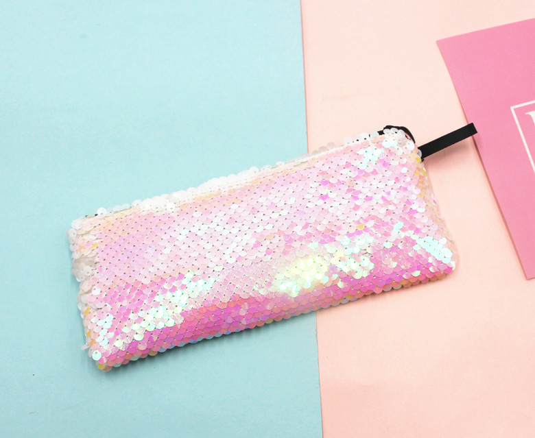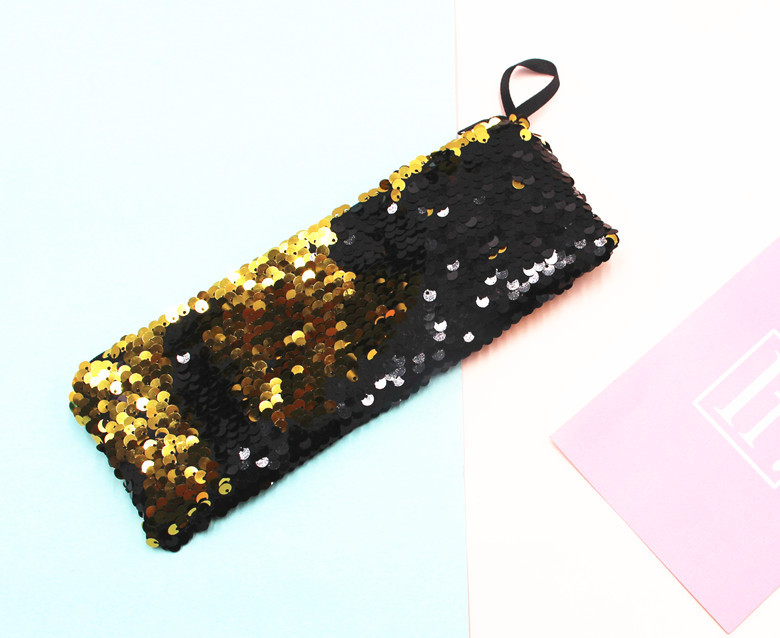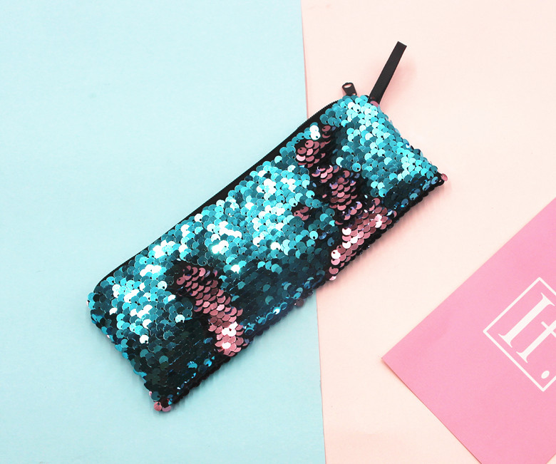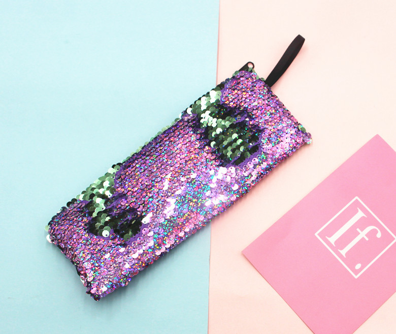 跨境新款学生笔袋美人鱼双色亮片笔袋DIY亮片包耳机数据线收纳包
