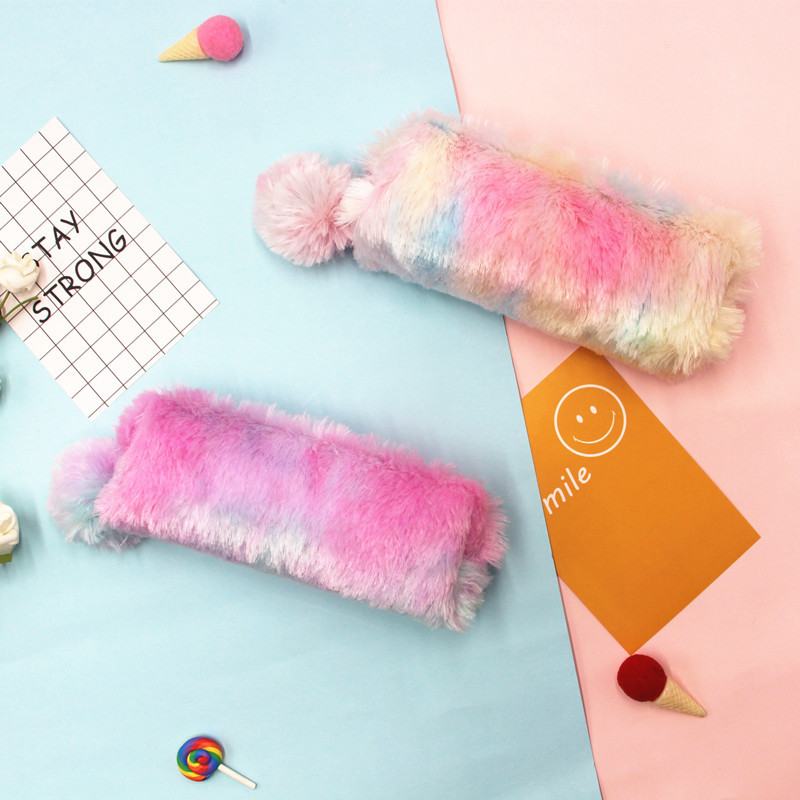 新款彩虹色毛绒笔袋学生大容量文具收纳袋八角笔袋少女心铅笔盒袋 投诉