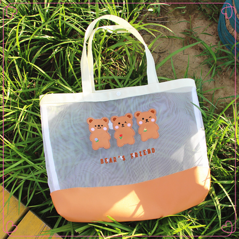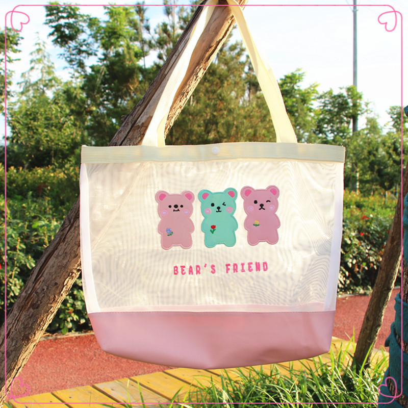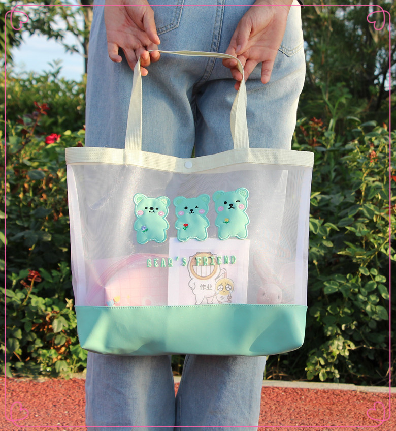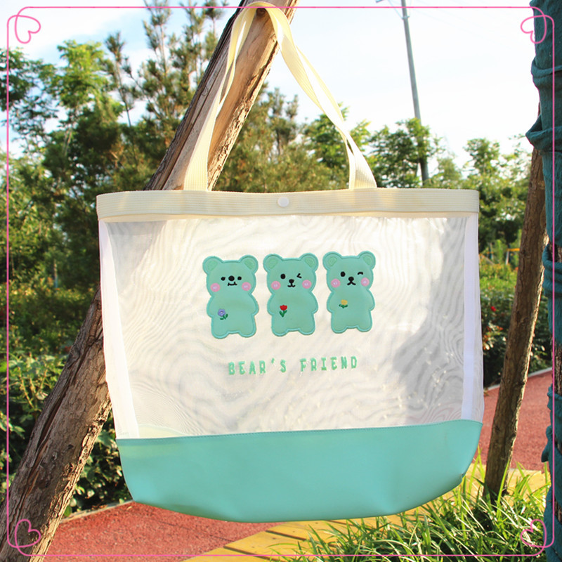 新款卡通手提包日系收纳袋网纱单肩包ins沙滩包创意户外女生包 投诉