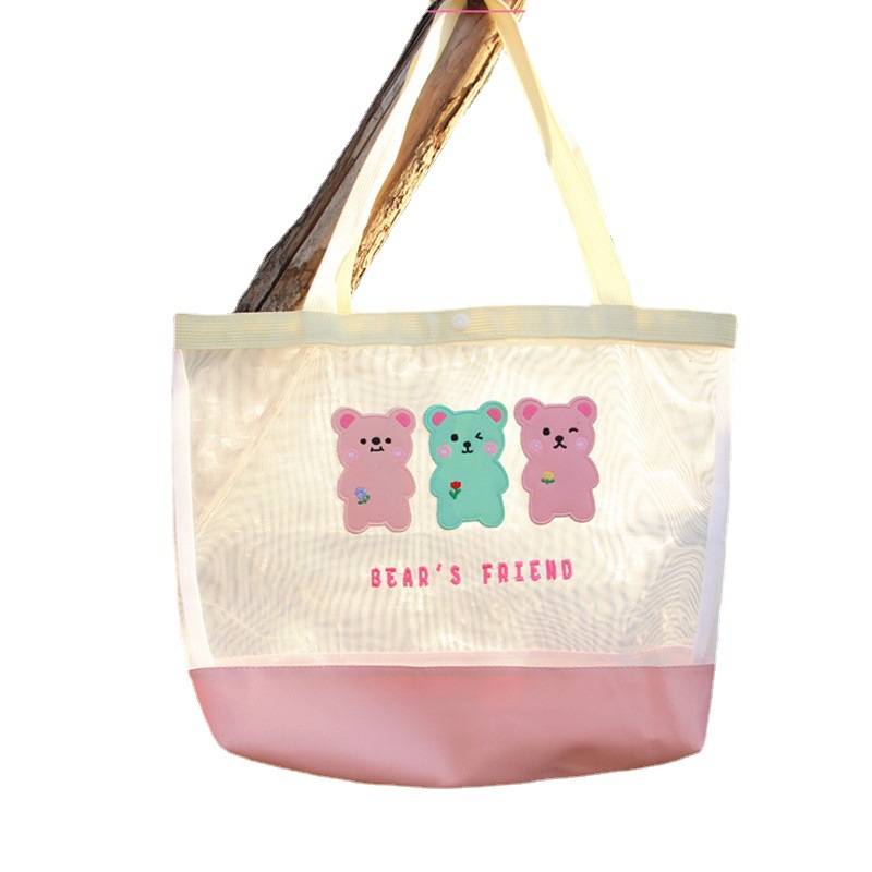 新款卡通手提包日系收纳袋网纱单肩包ins沙滩包创意户外女生包