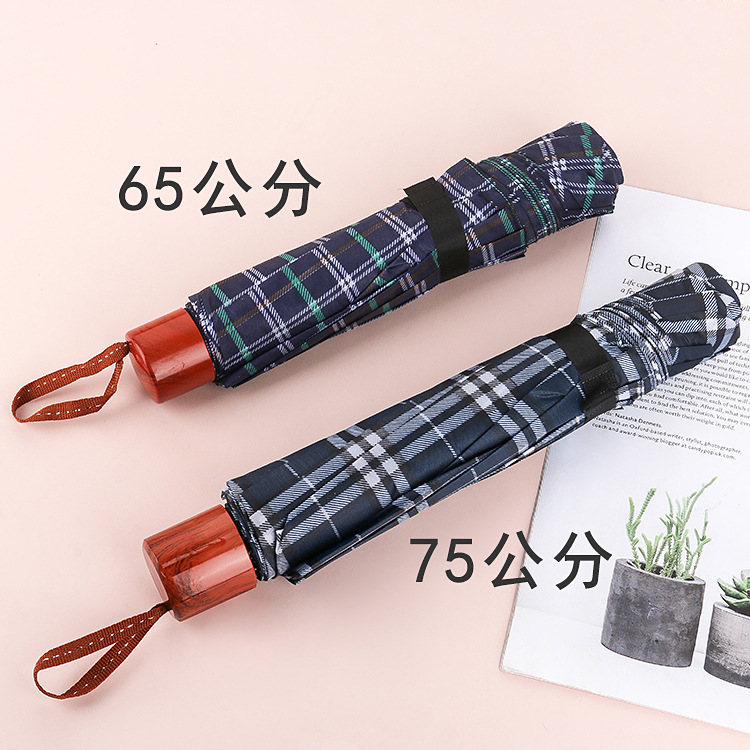 经典款男士商务伞厂家批发创意十骨加大格子伞双人三人折叠晴雨伞