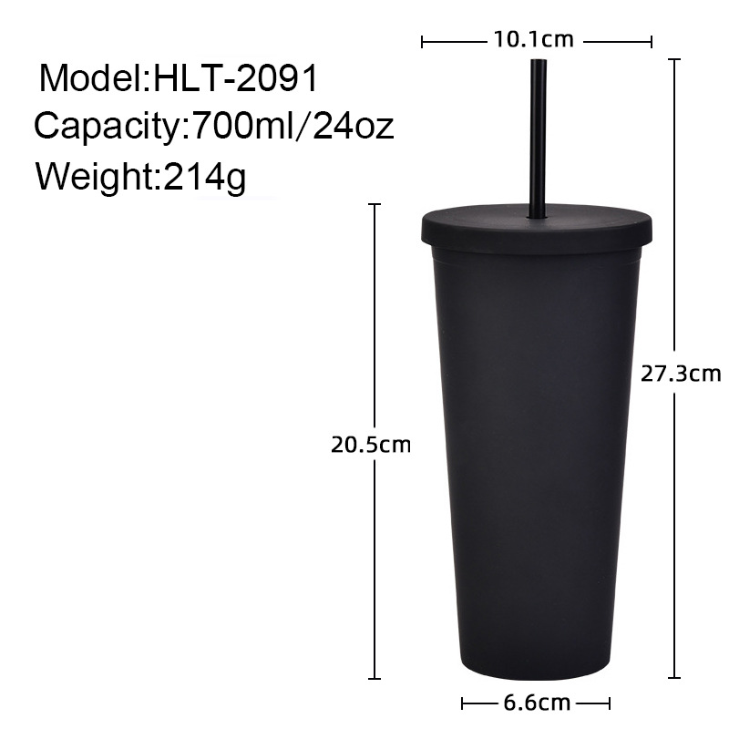 2024跨境热卖厂家直供双层塑料吸管杯22OZ大容量户外磨砂随手水杯 投诉