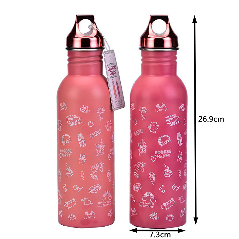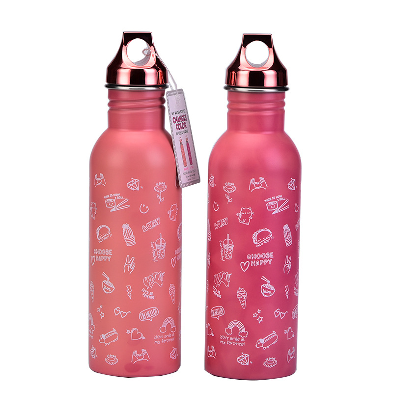 2024新款跨境单层不锈钢运动水瓶 感温变色水杯创意魔术遇冷变色