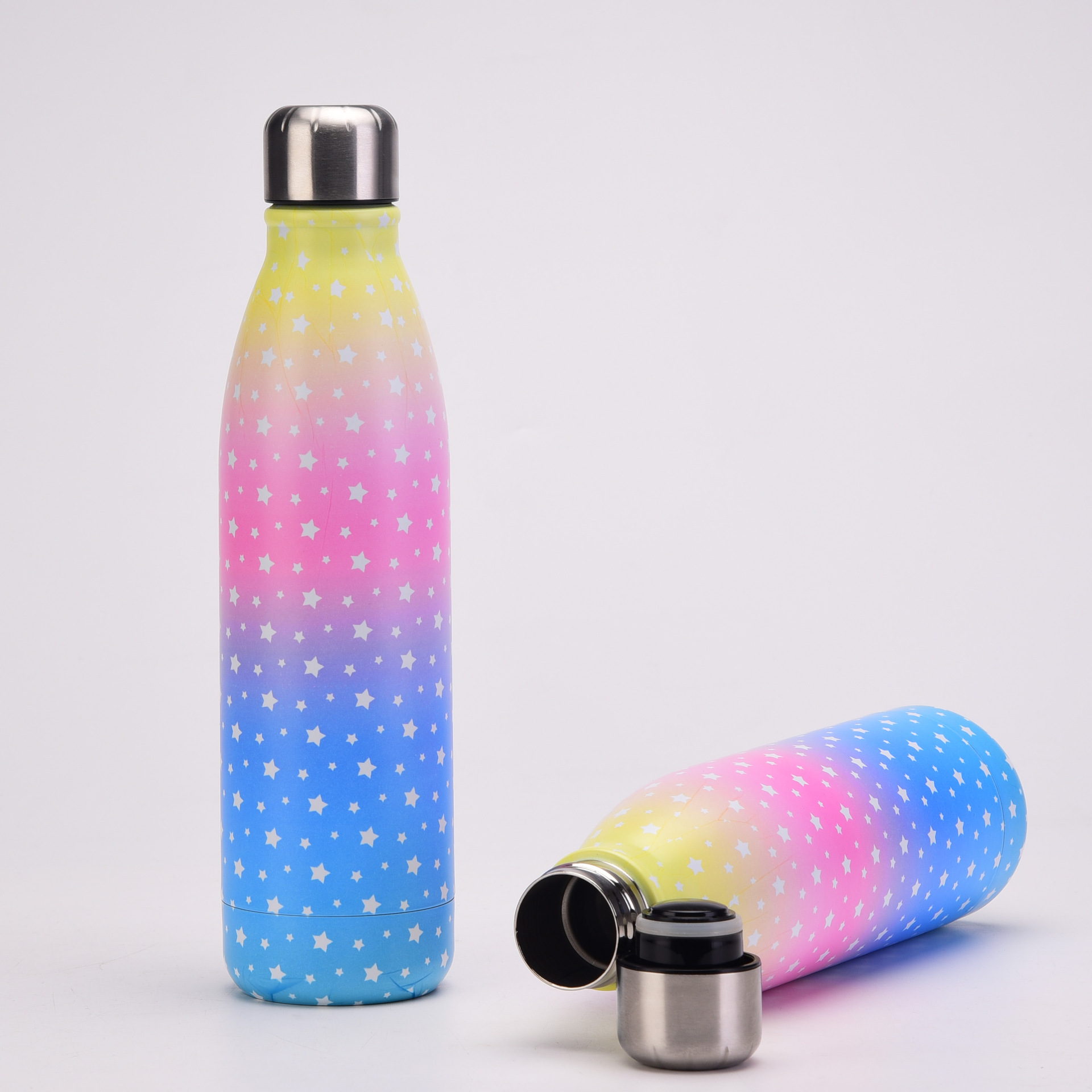 跨境新款可乐瓶保温杯创意星空渐变可乐瓶户外便携提手运动水杯