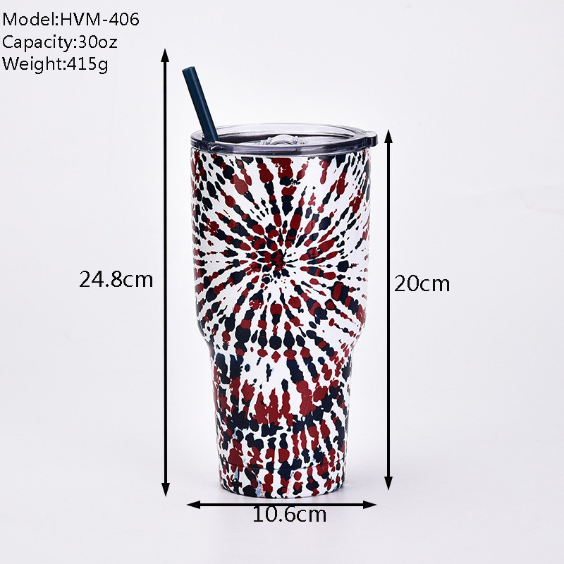 跨境新款30OZ扎染冰霸杯大容量不锈钢户外咖啡杯 创意吸管水杯