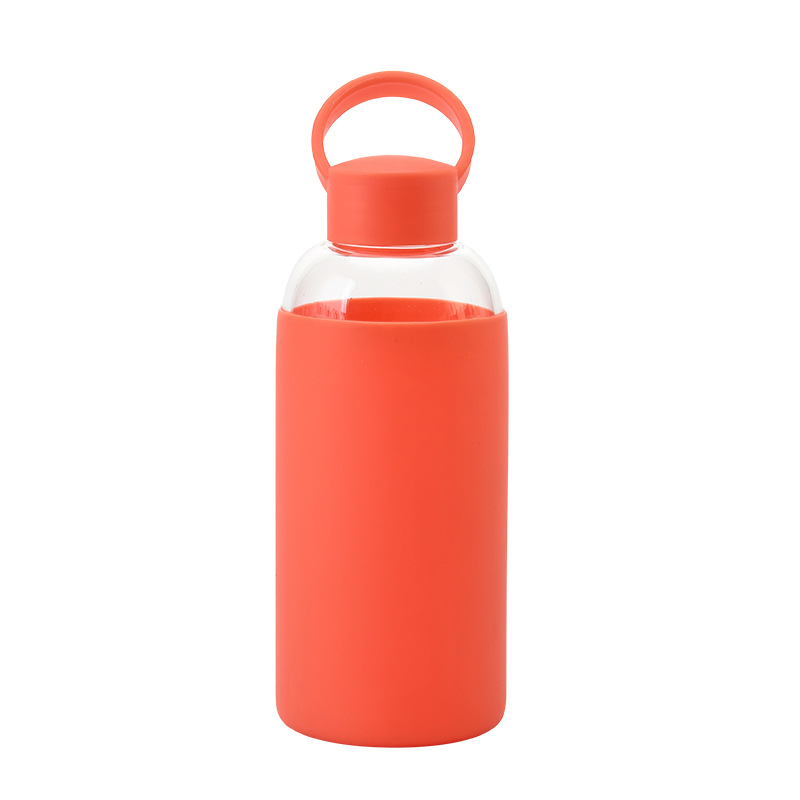 跨境欧美带硅胶套运动手提水杯 学生情侣款随手杯高硼硅玻璃水杯