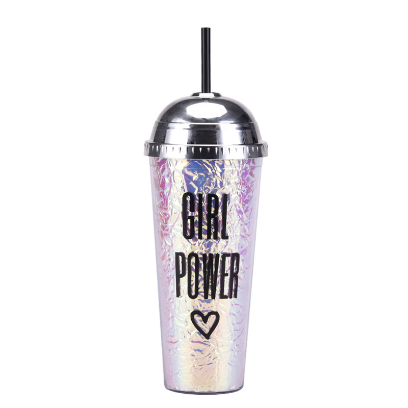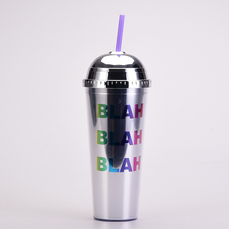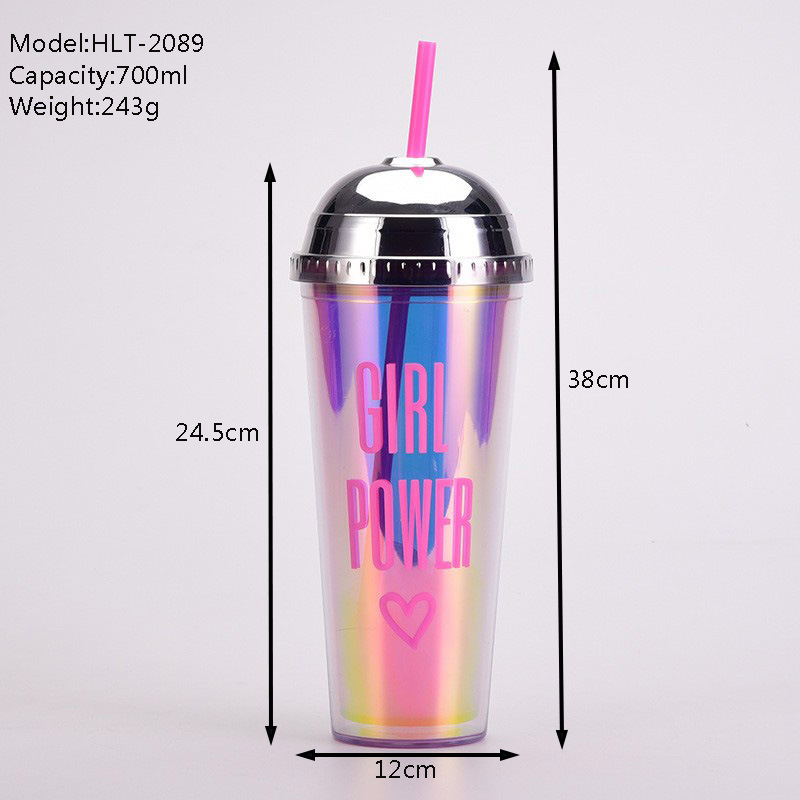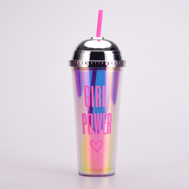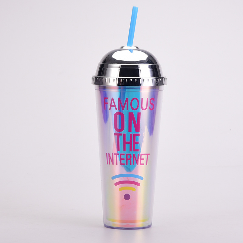 2024欧美新款24oz吸管杯豹纹幻彩半圆盖水杯大容量便携双层塑料杯 投诉