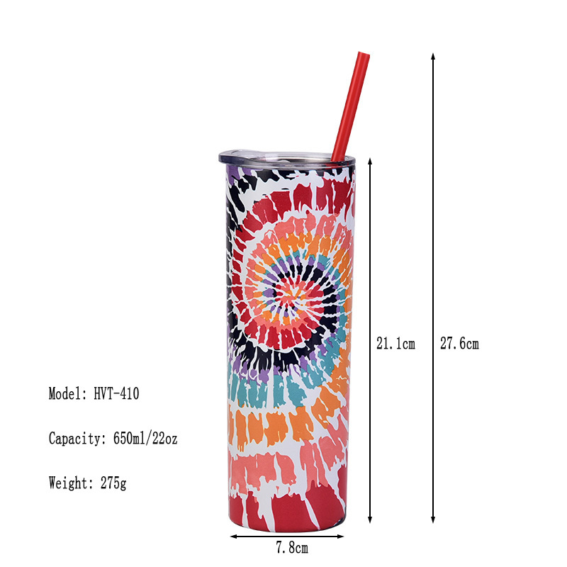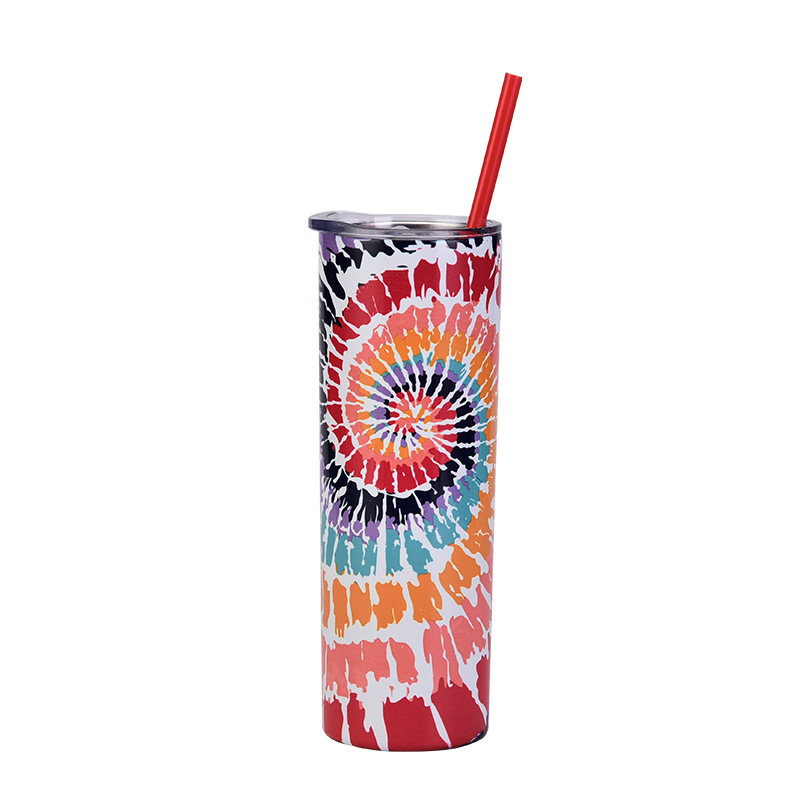 2024跨境新款不锈钢直筒杯创意SKINNY杯子彩色双层扎染热升华水杯