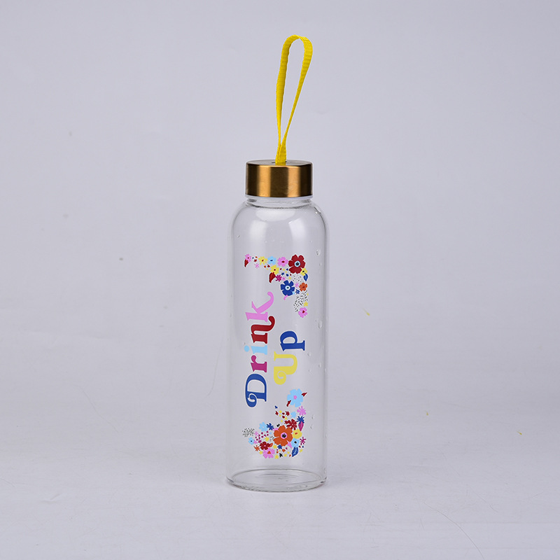 外贸金属盖带便携吊绳500ml单层高硼硅可DIY制作透明玻璃杯现货 投诉