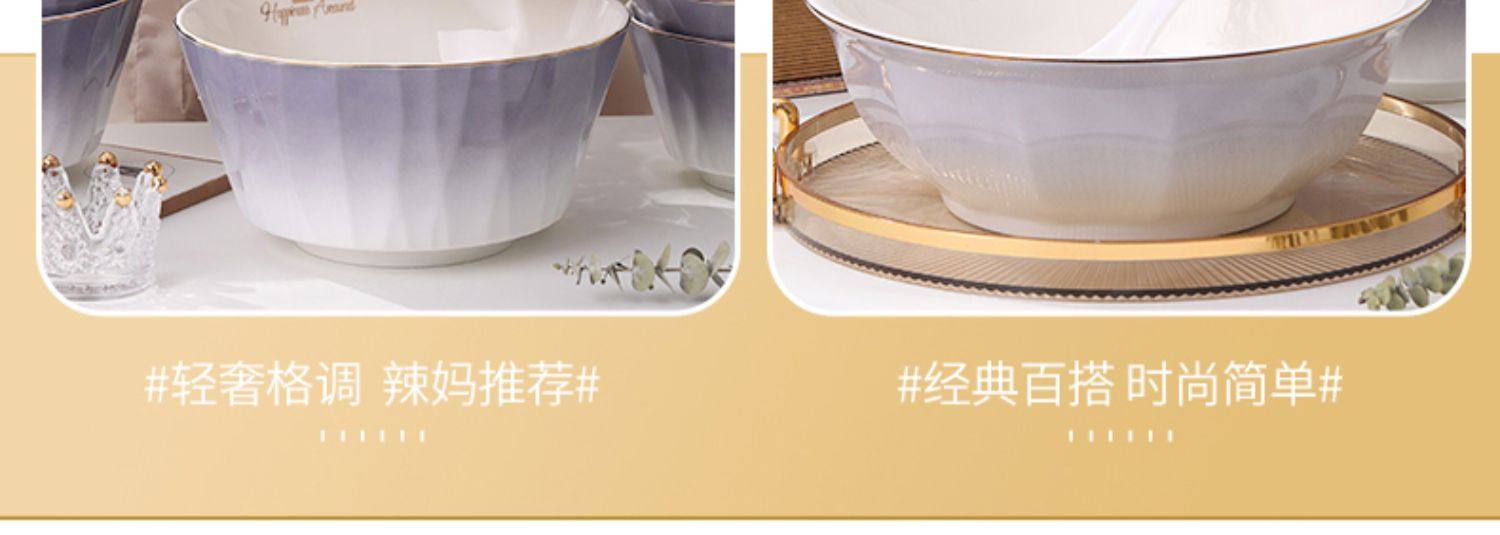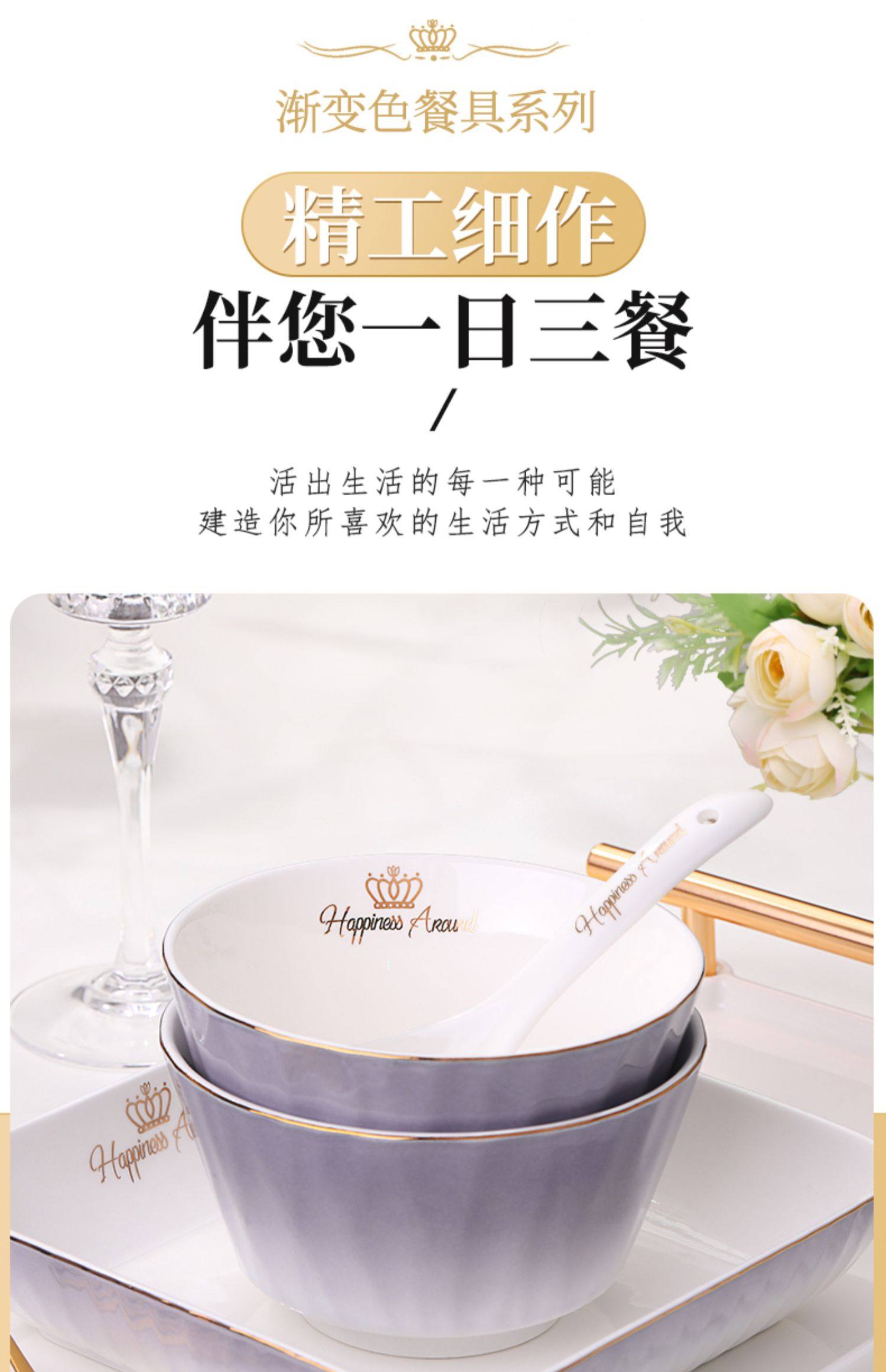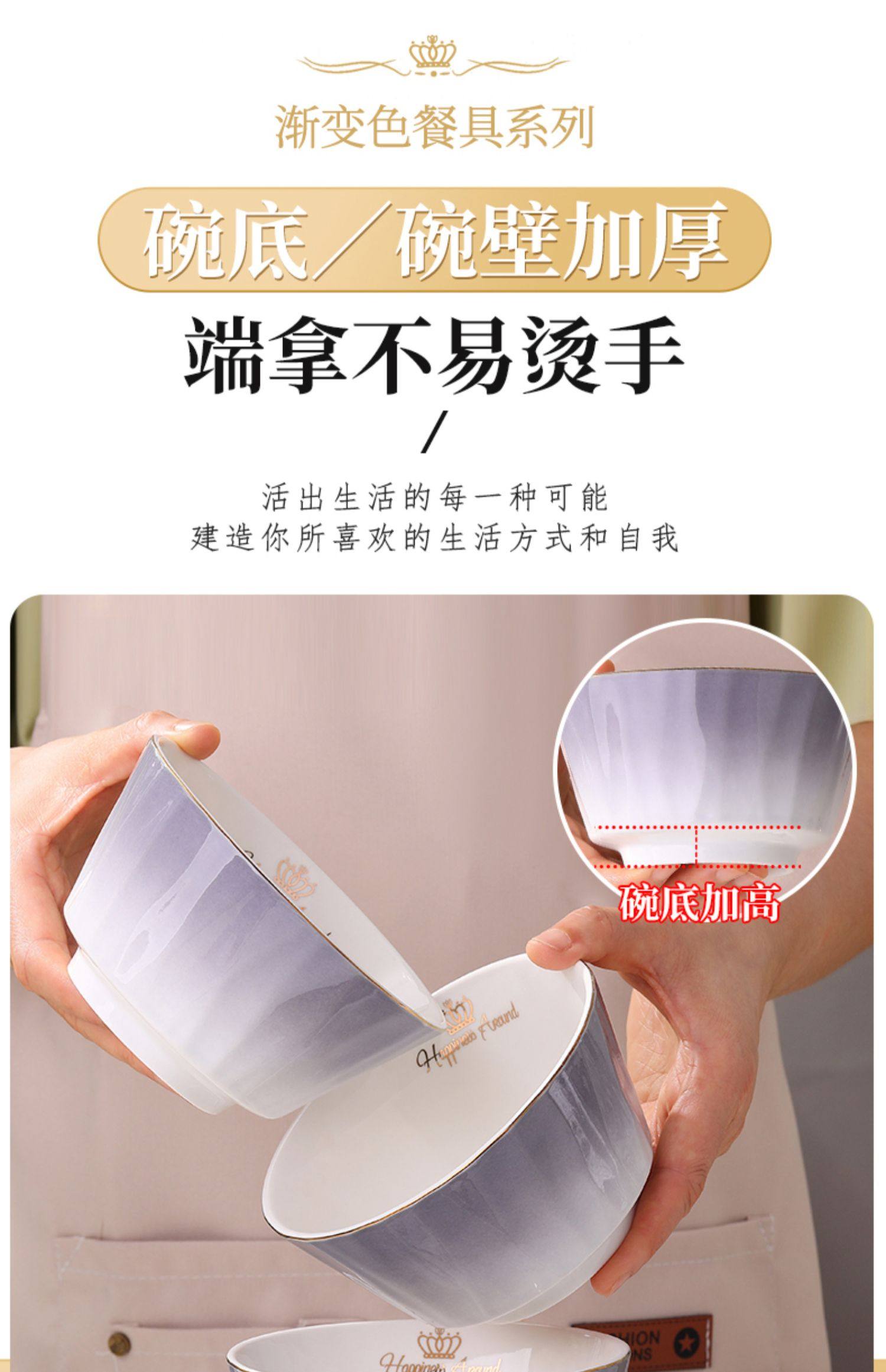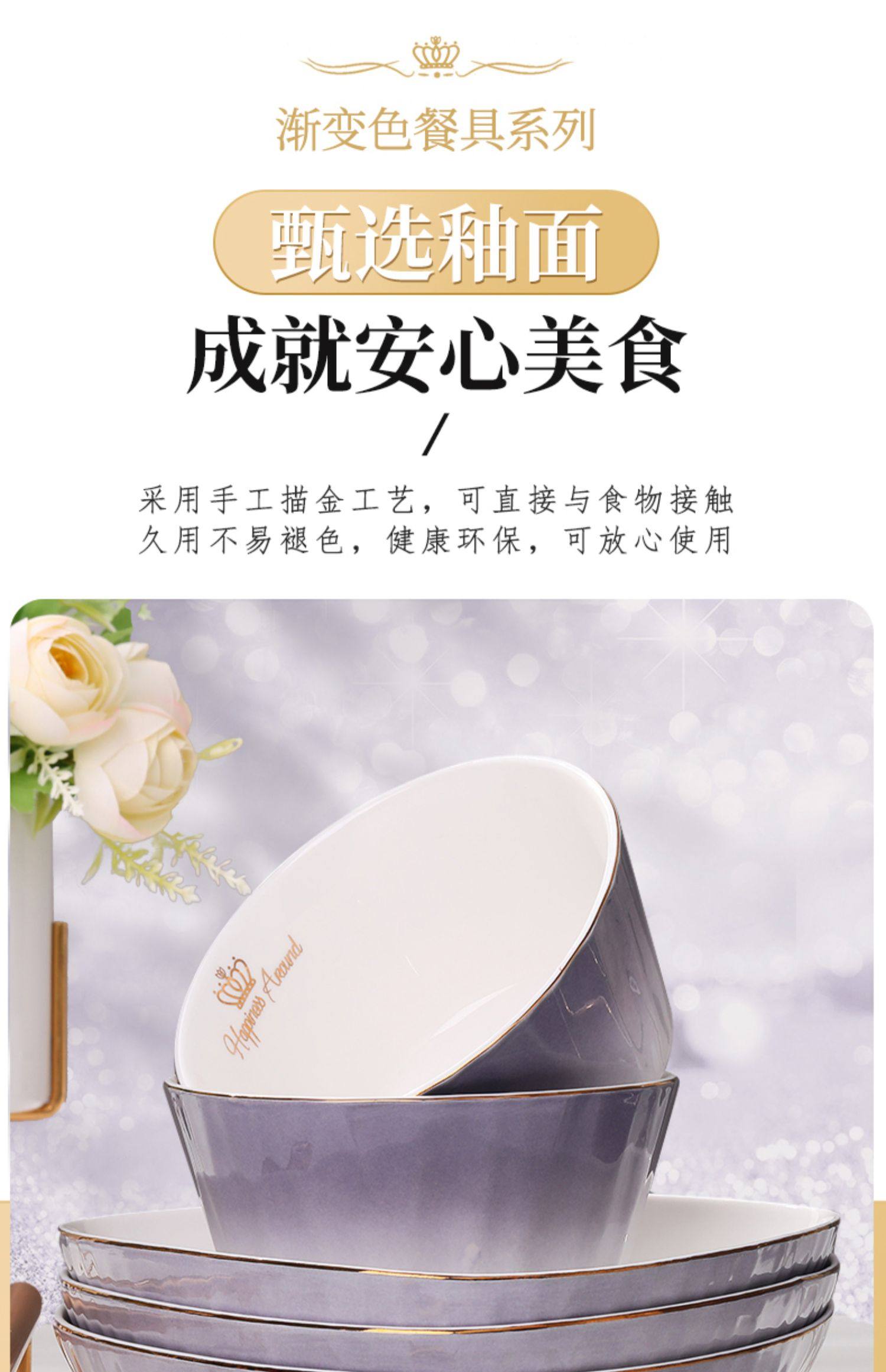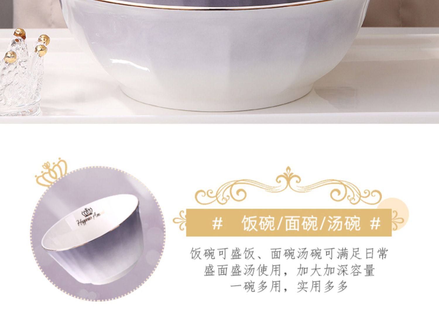 陶瓷碗家用欧式金边可微波碗盘组合加厚防烫面碗餐具 English | 投诉