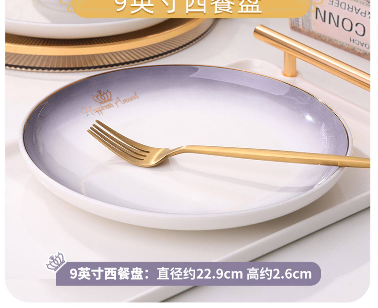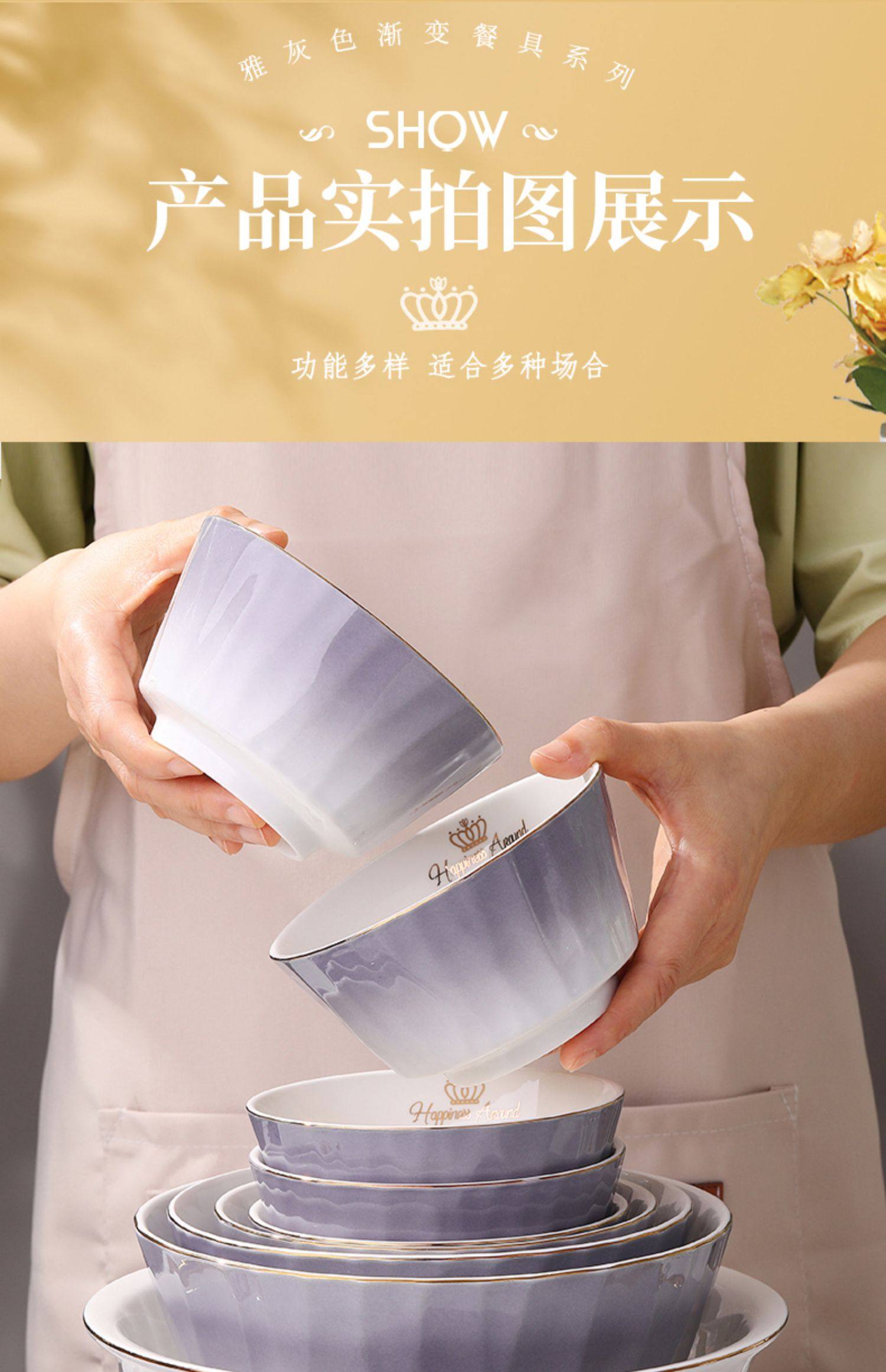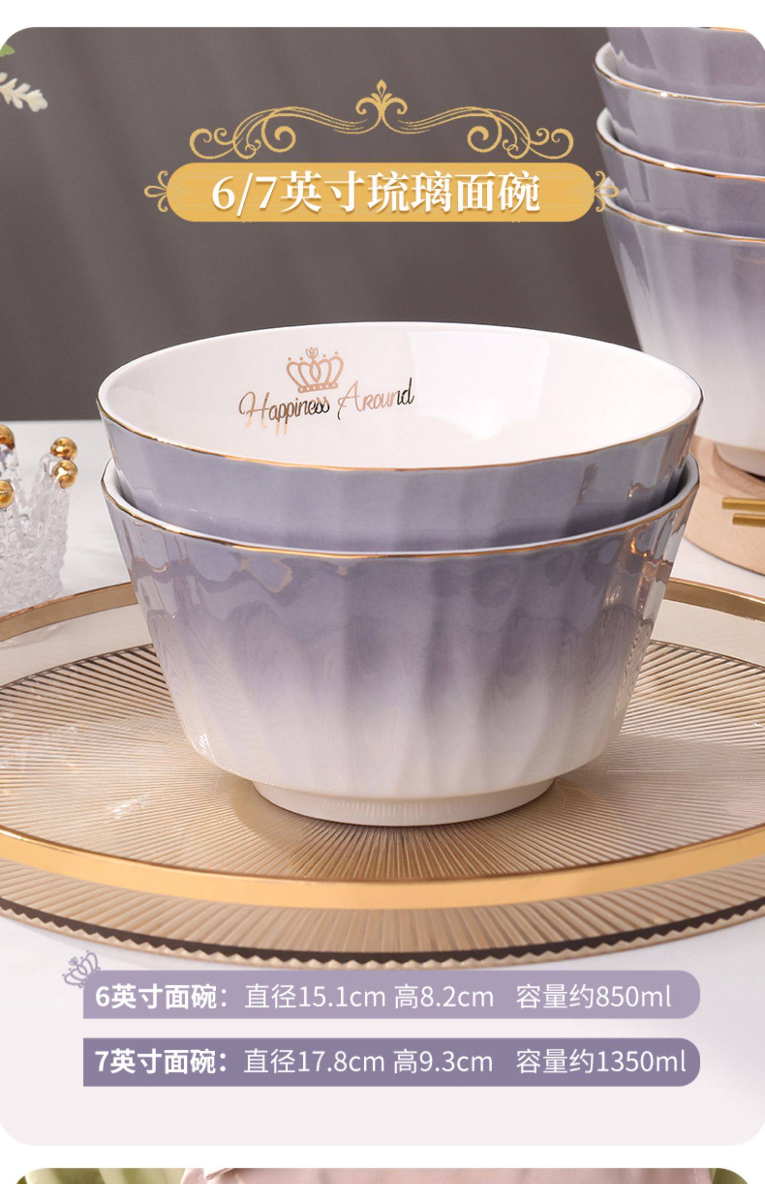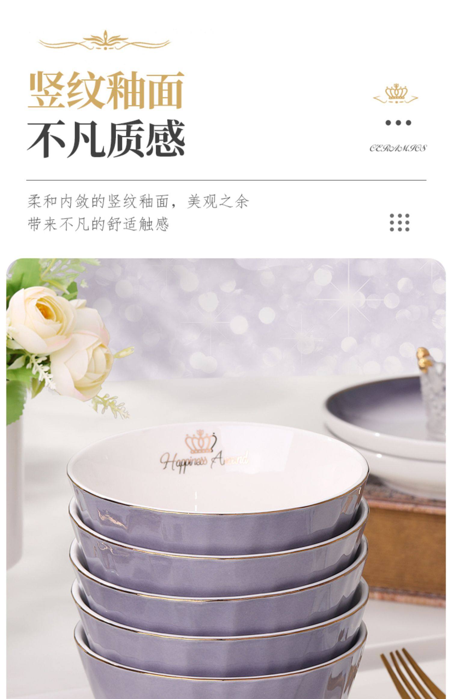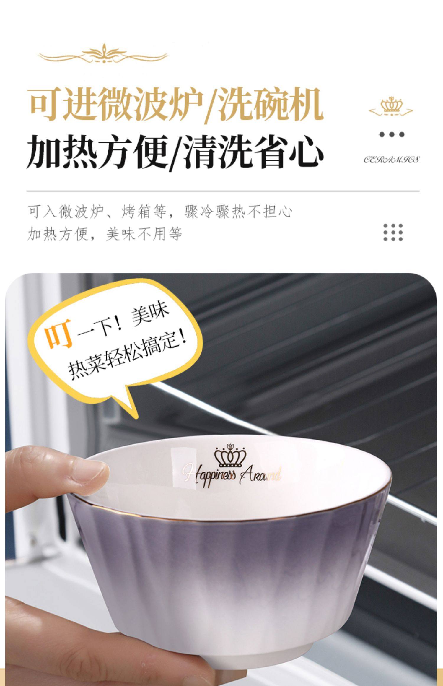 陶瓷碗家用欧式金边可微波碗盘组合加厚防烫面碗餐具 English | 投诉