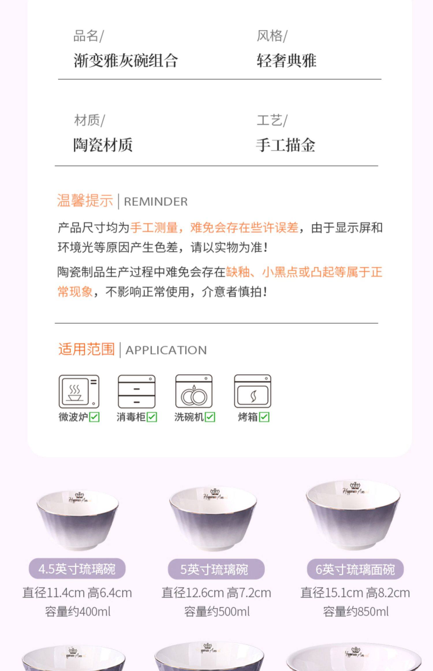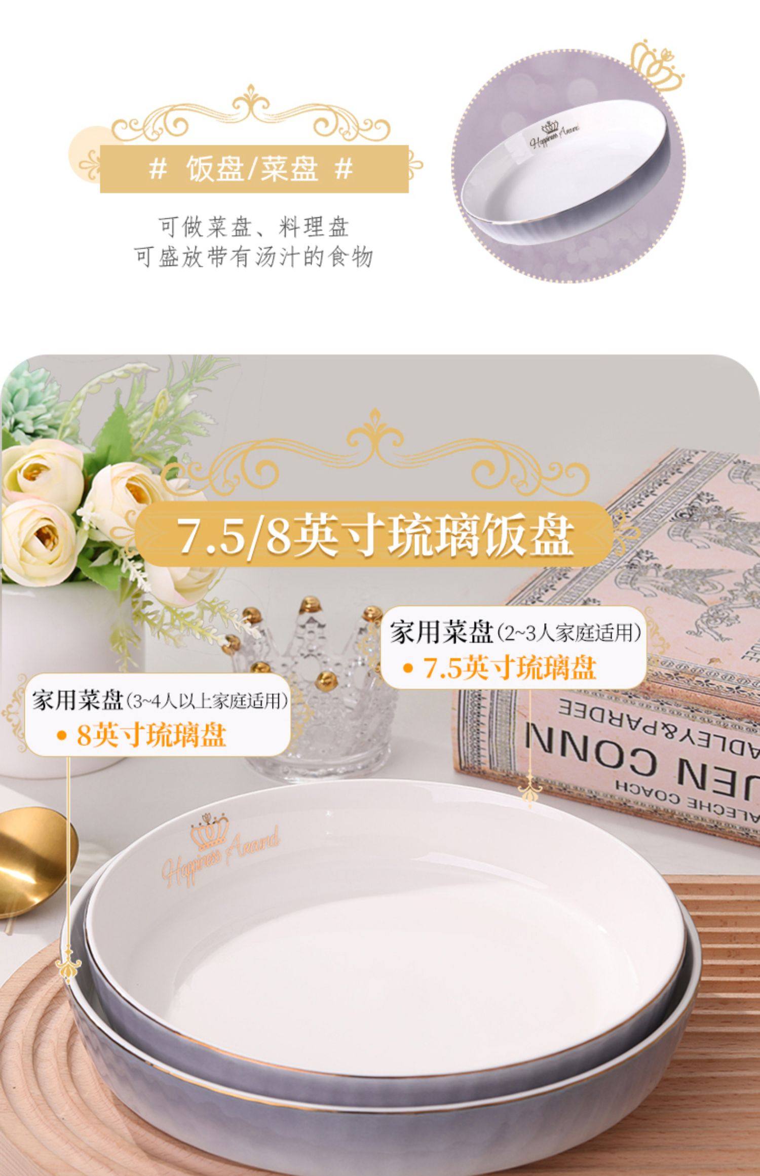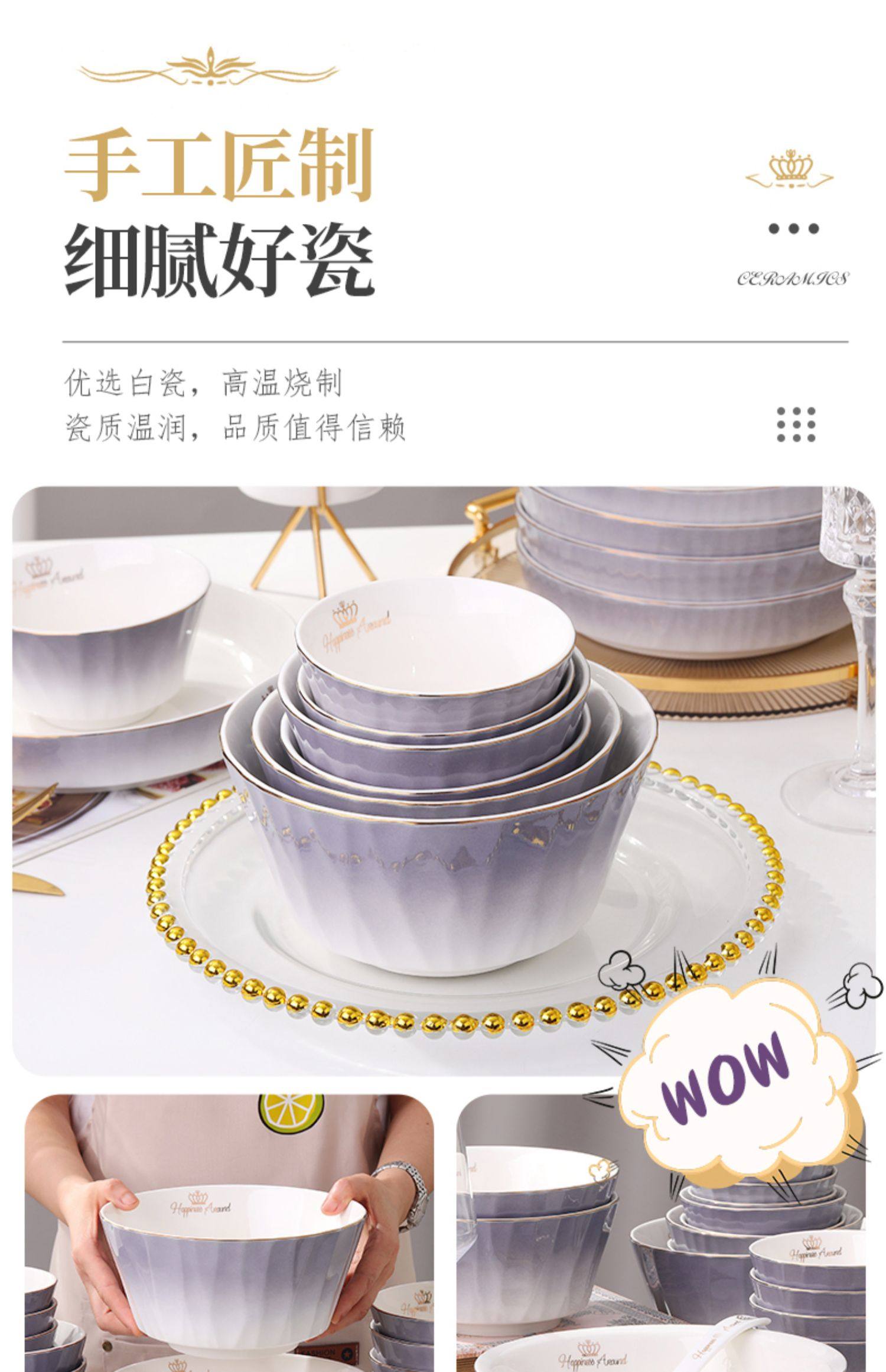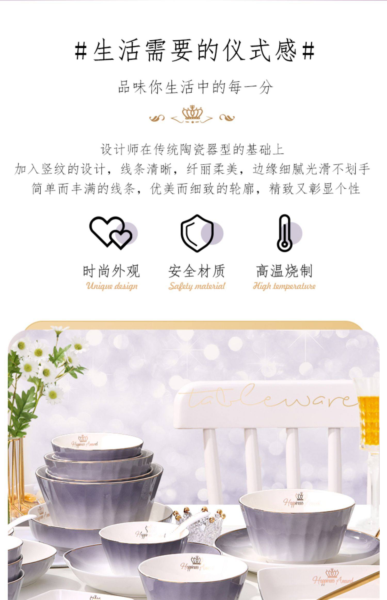 陶瓷碗家用欧式金边可微波碗盘组合加厚防烫面碗餐具 English | 投诉