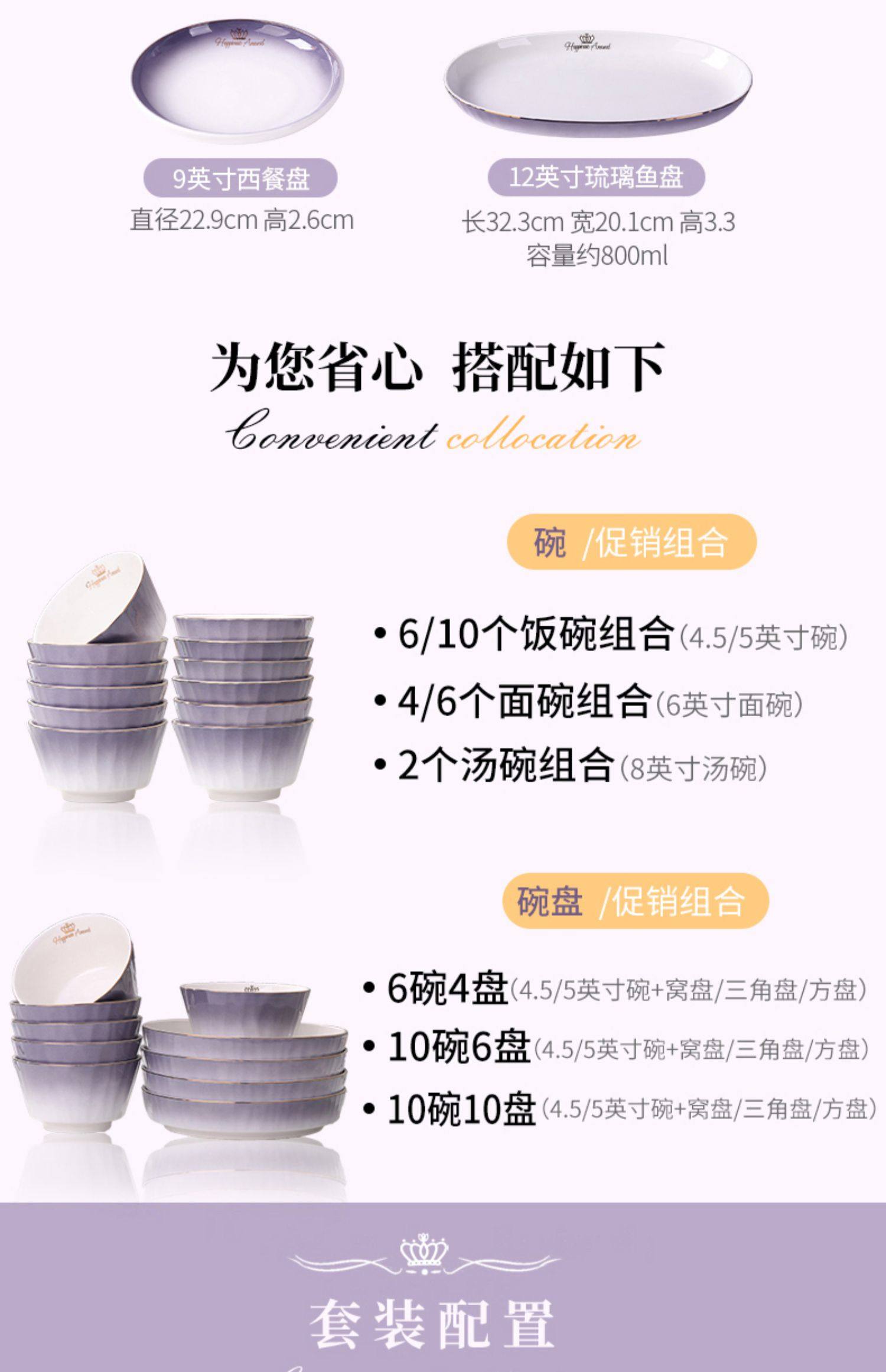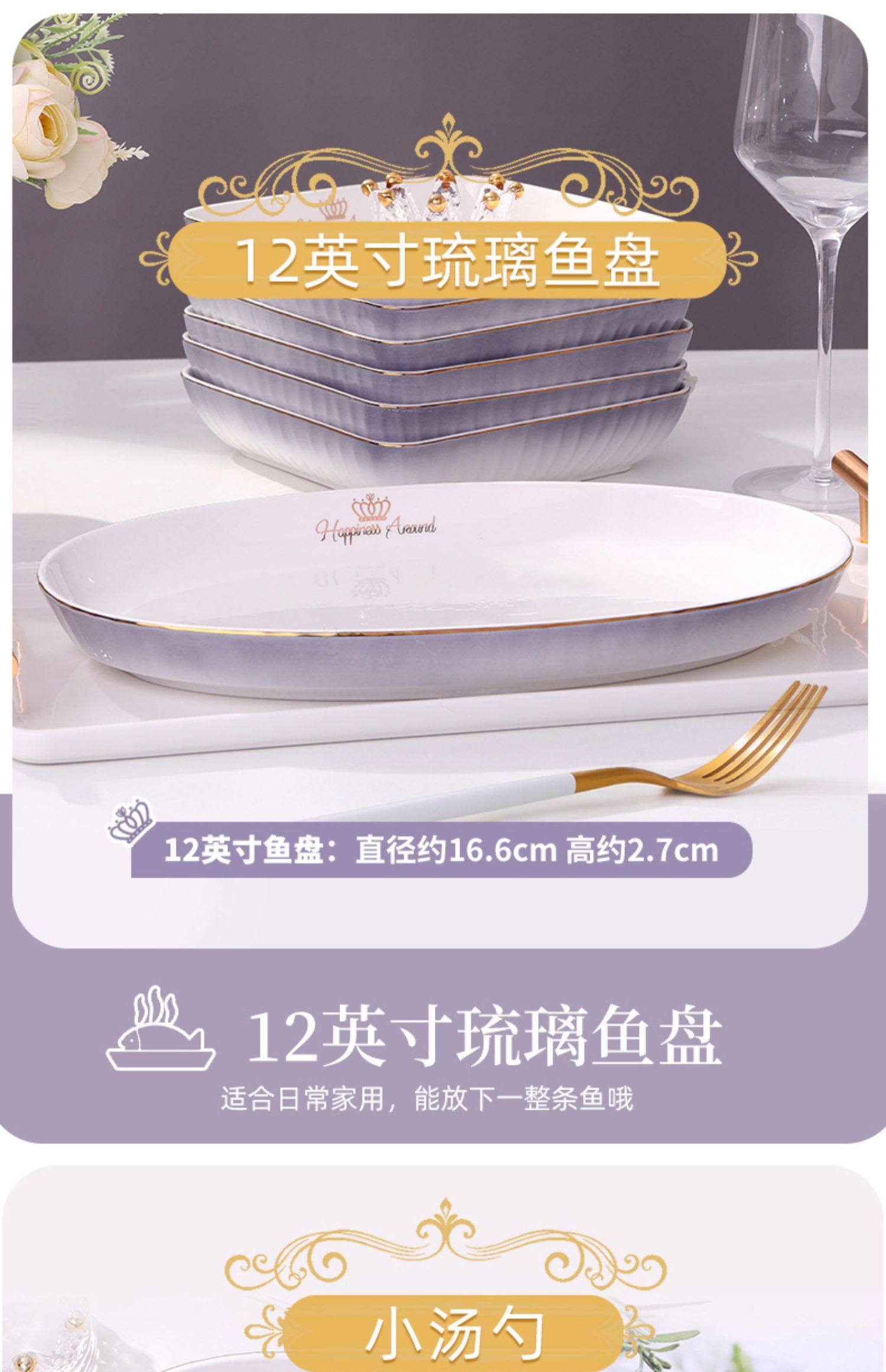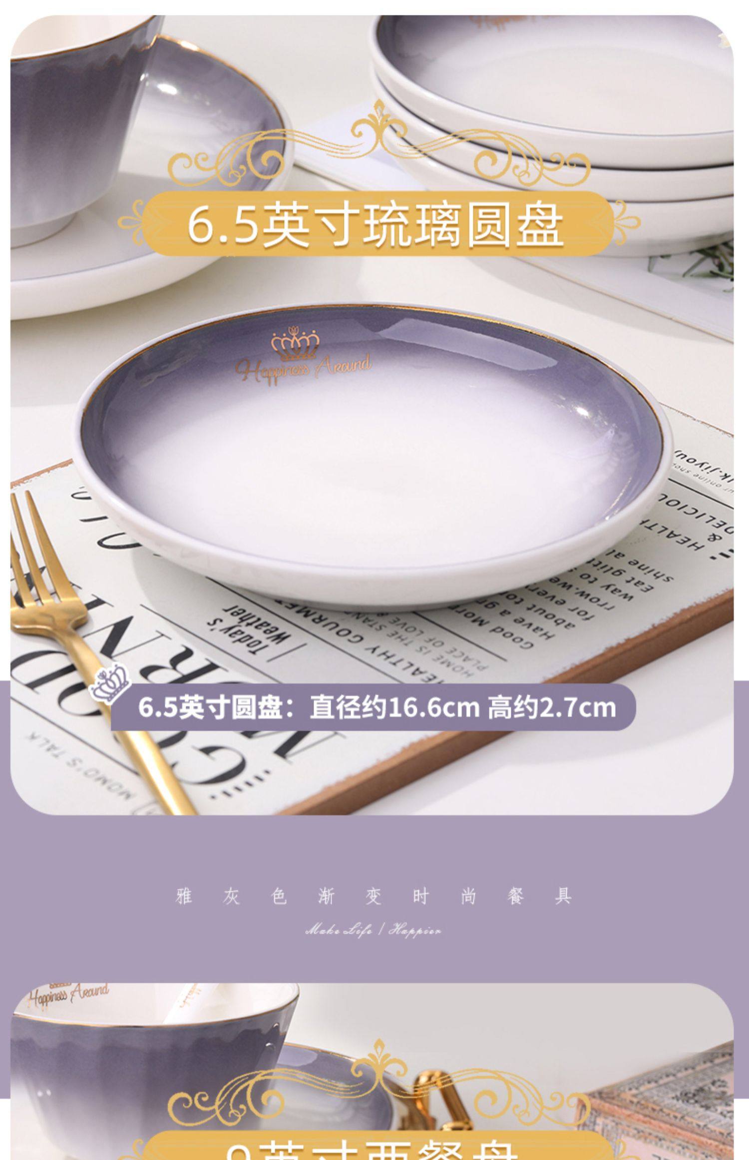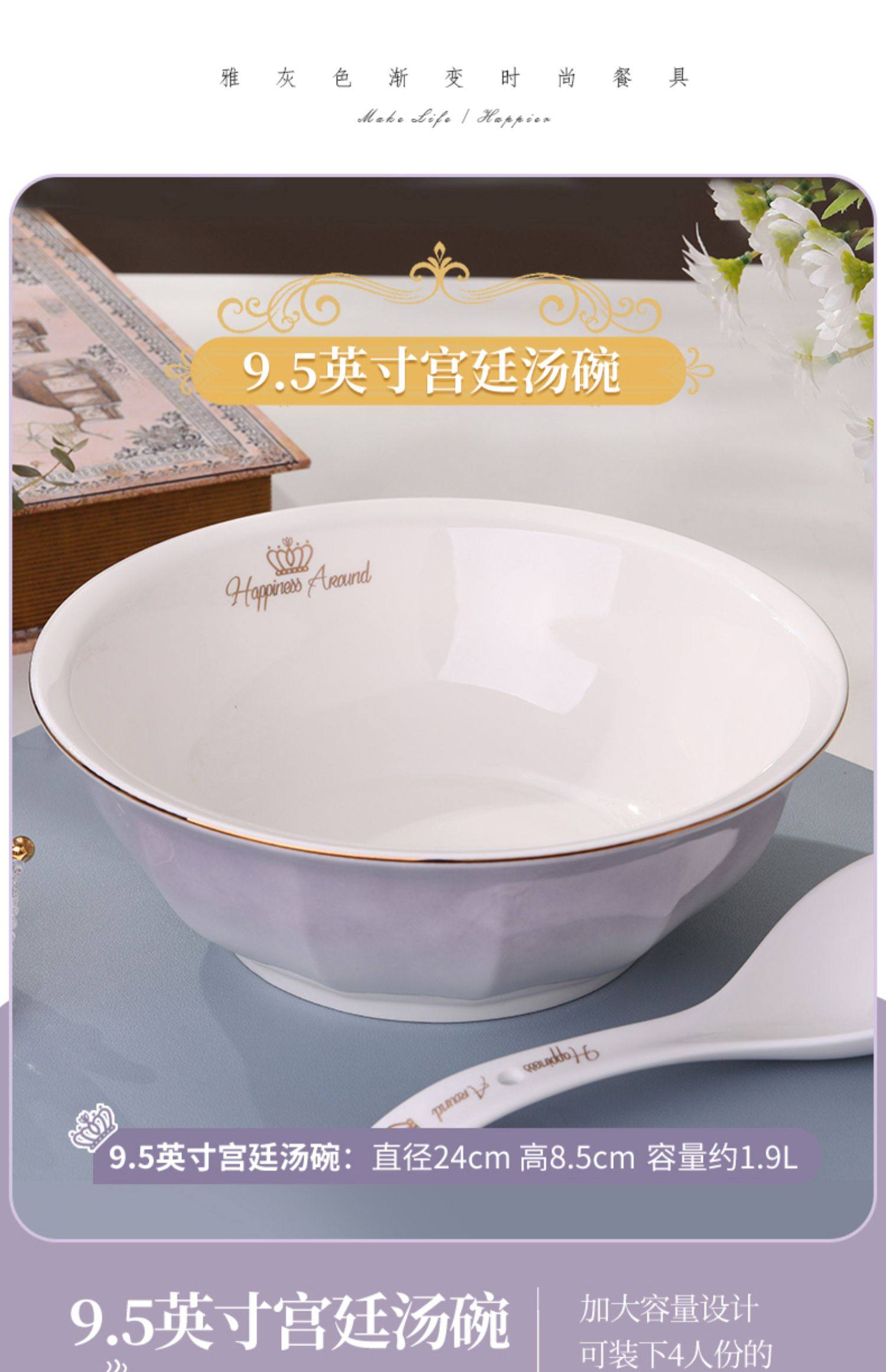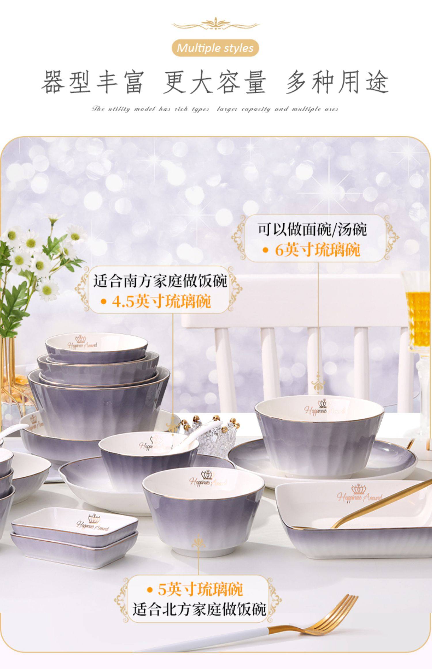 陶瓷碗家用欧式金边可微波碗盘组合加厚防烫面碗餐具 English | 投诉