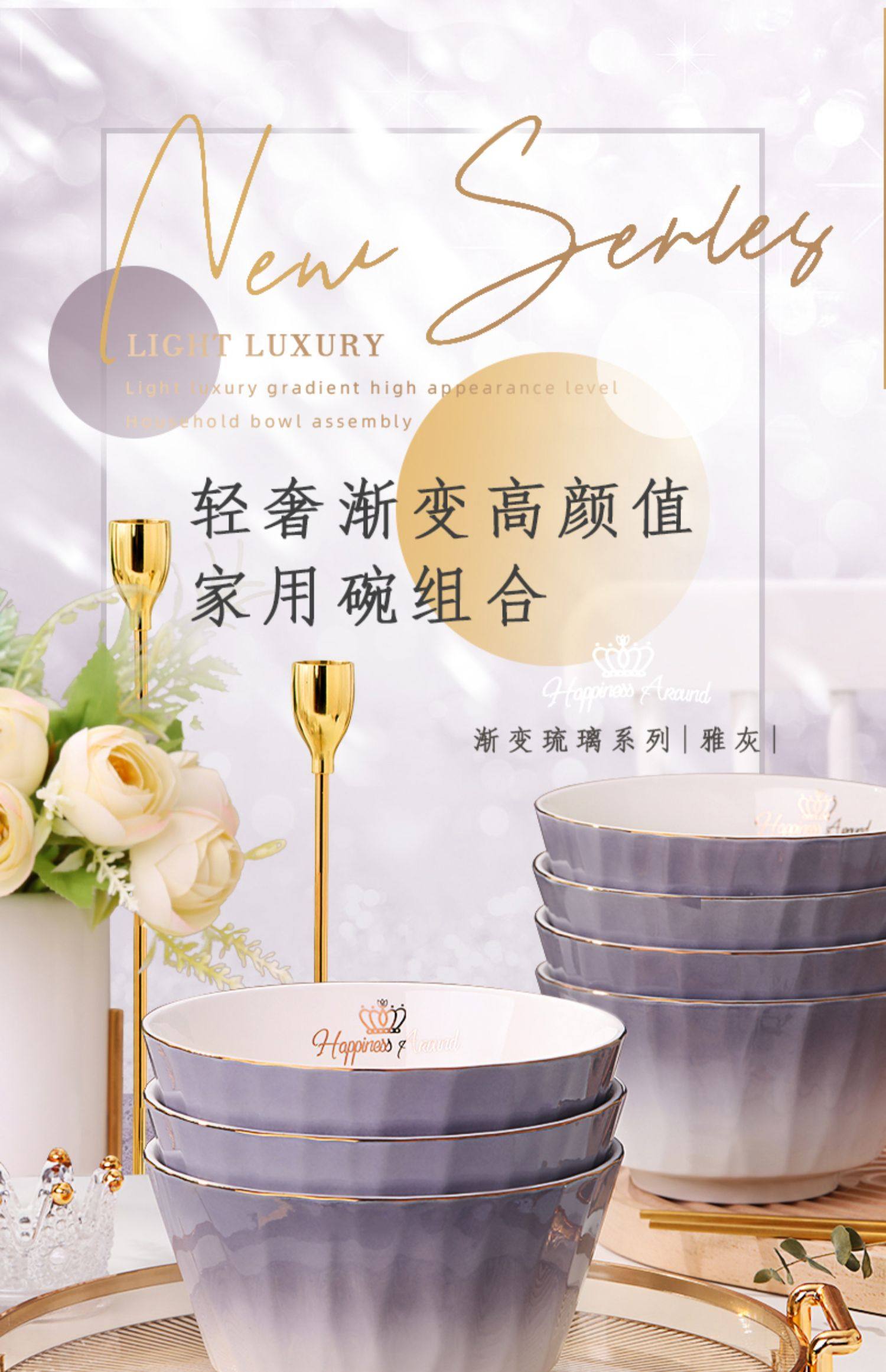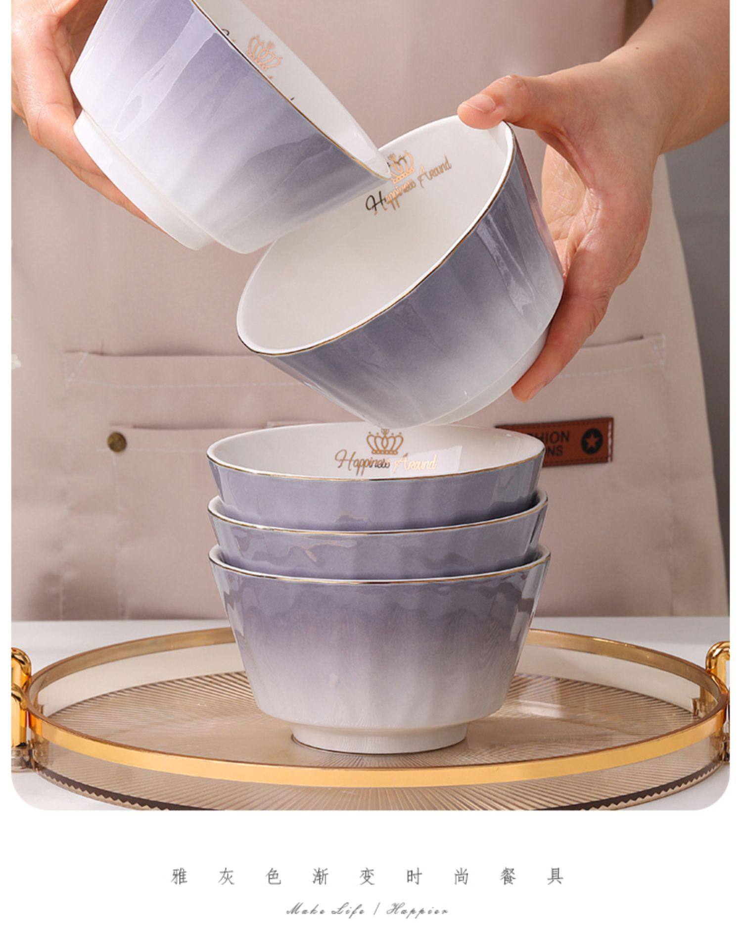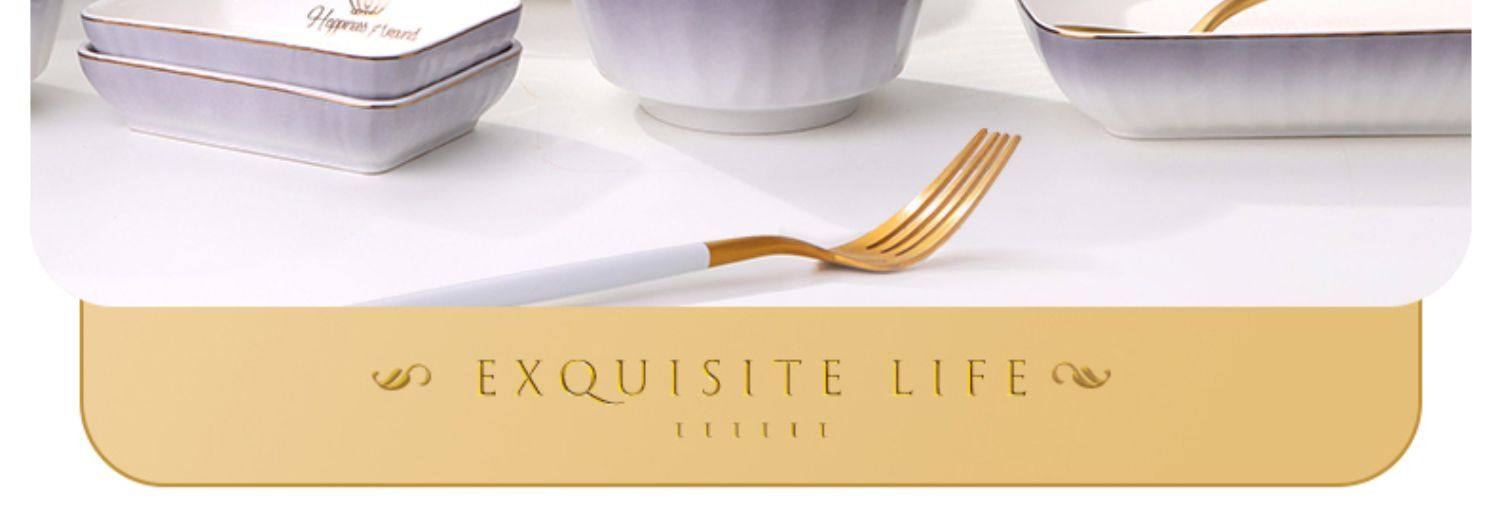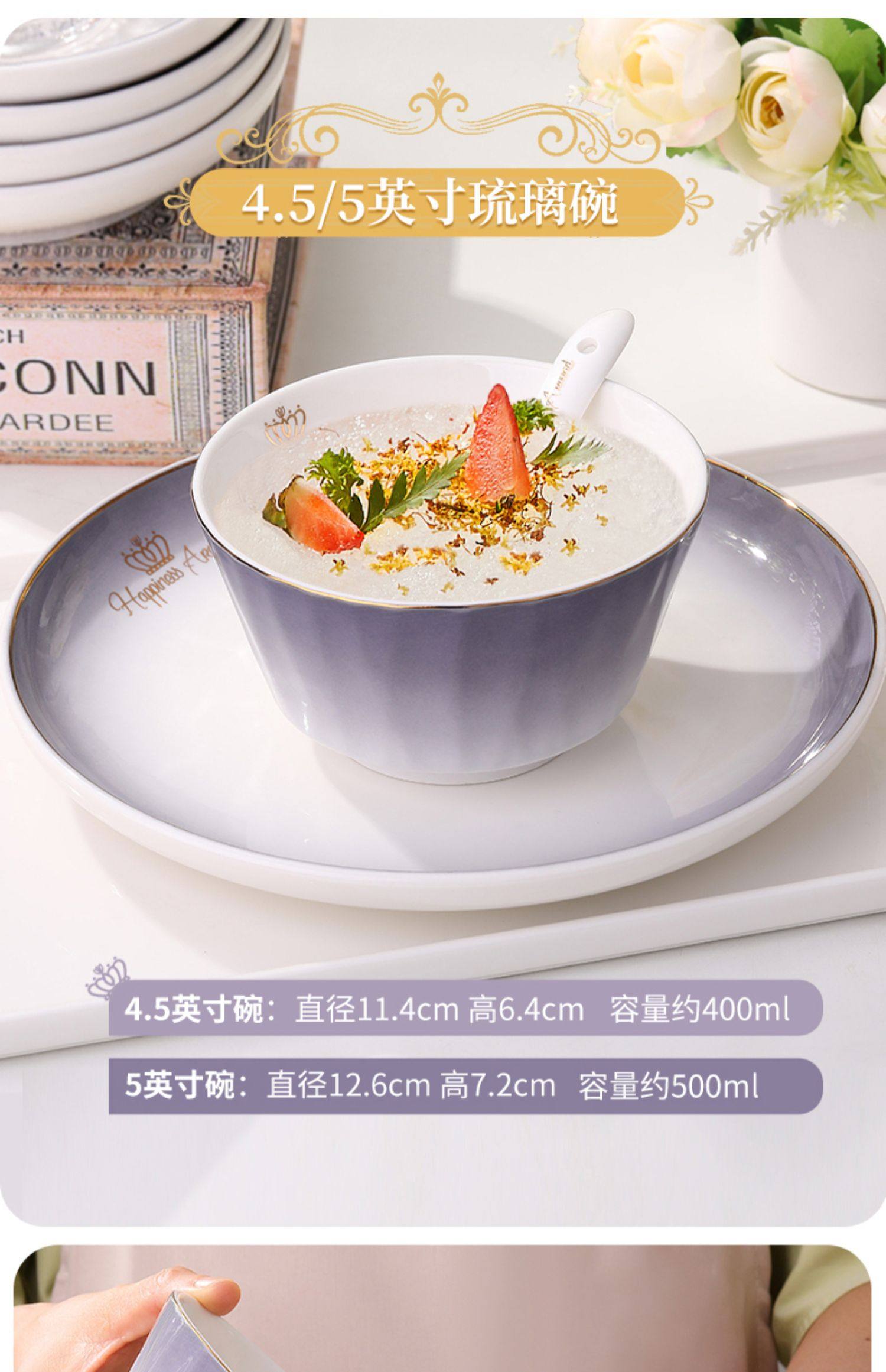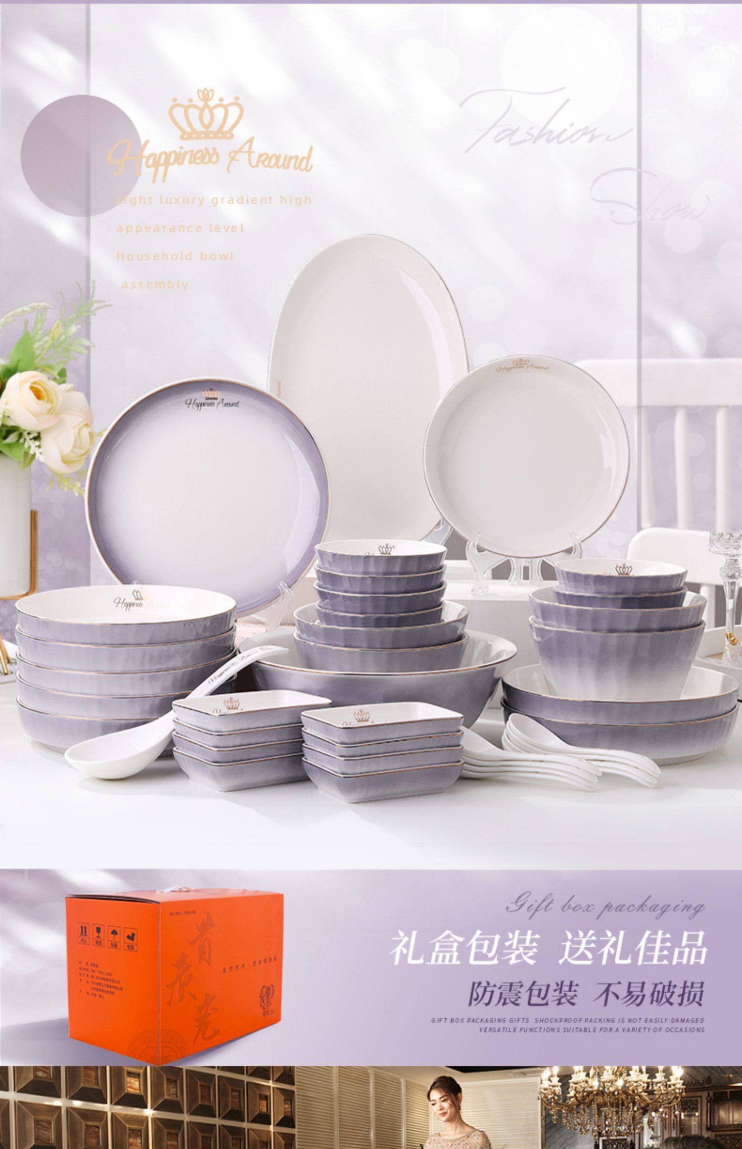 陶瓷碗家用欧式金边可微波碗盘组合加厚防烫面碗餐具 English | 投诉