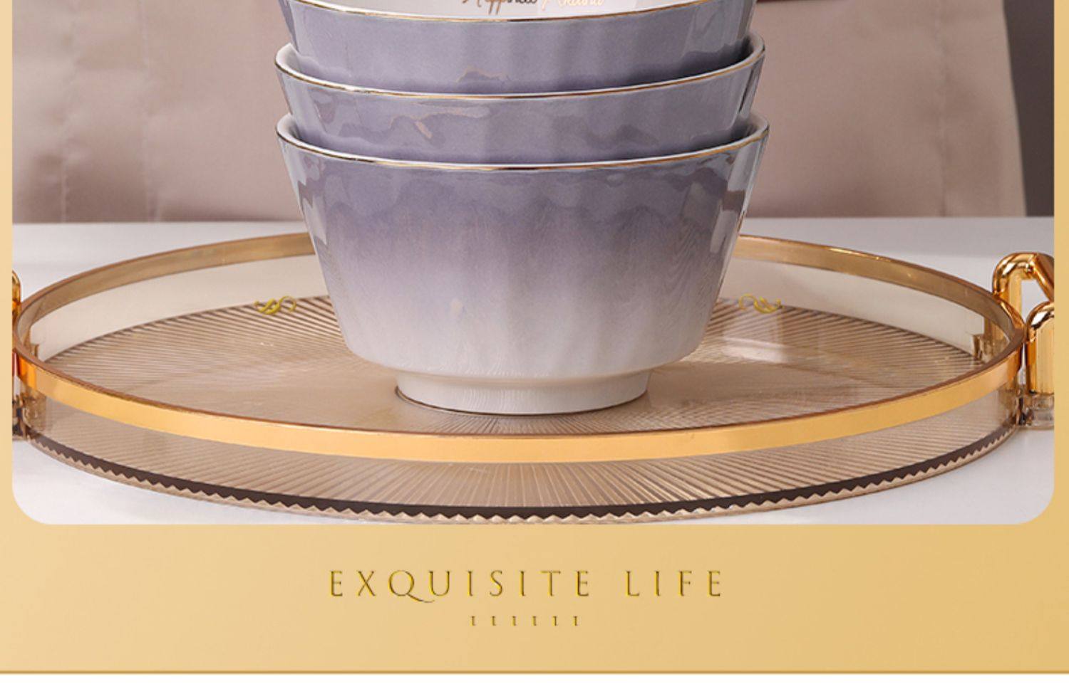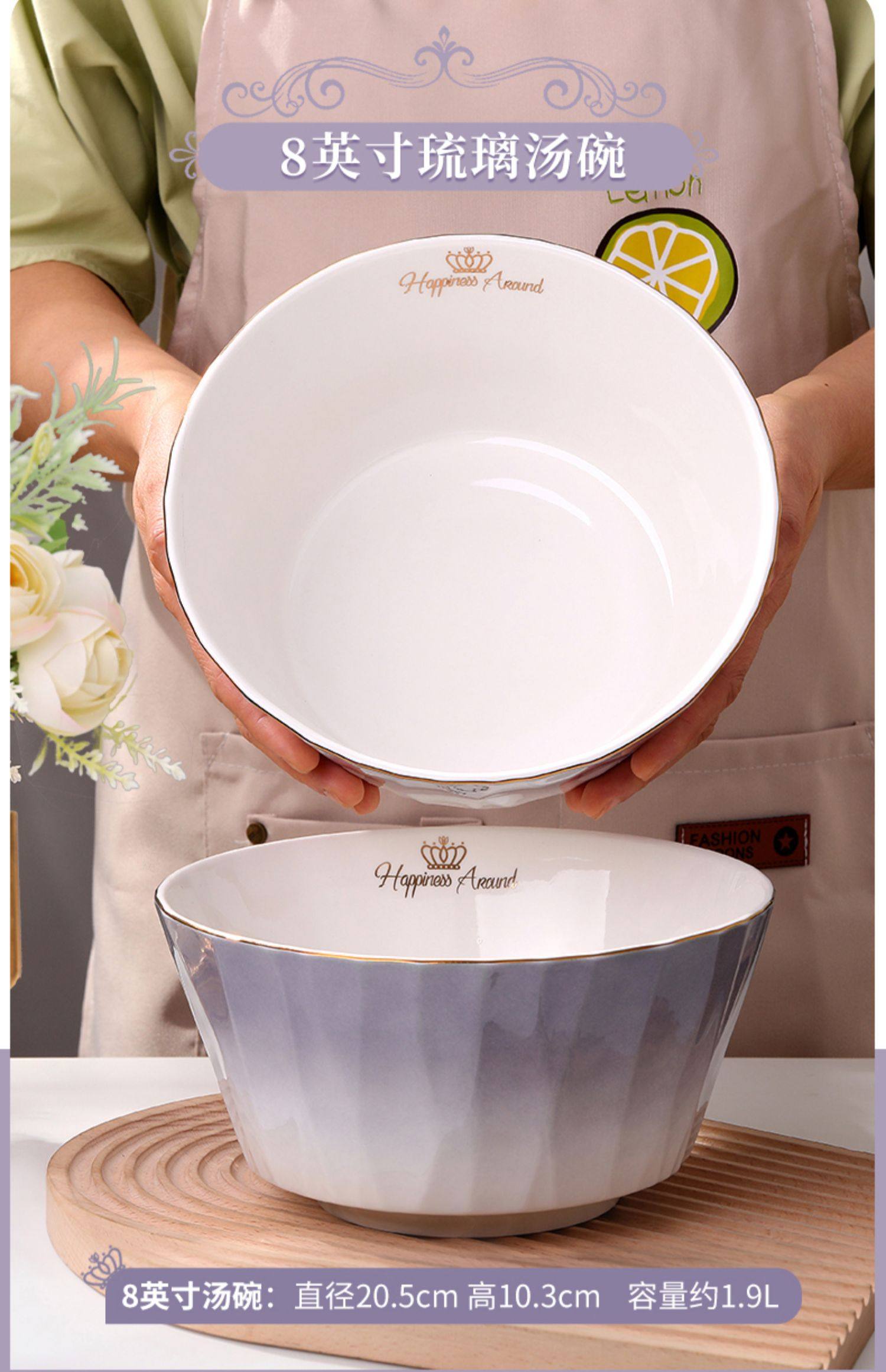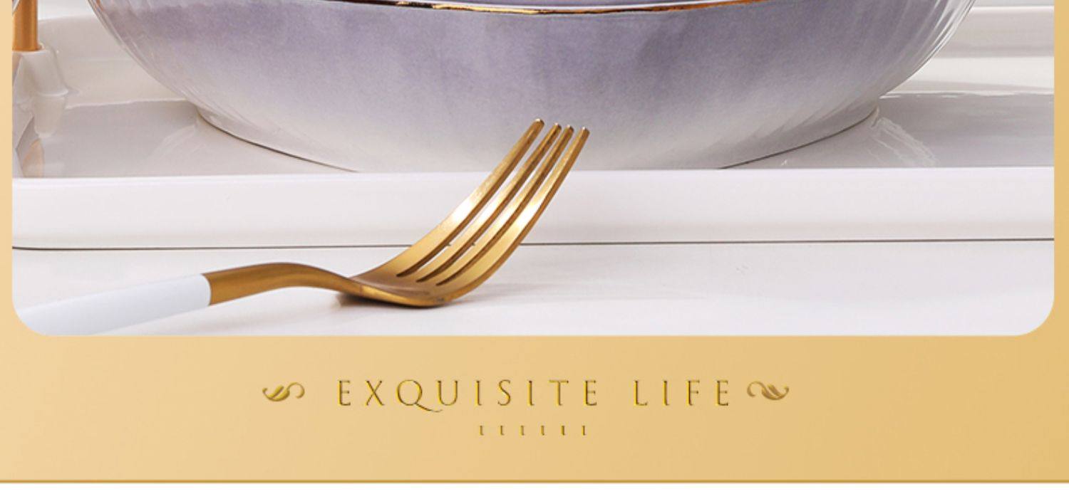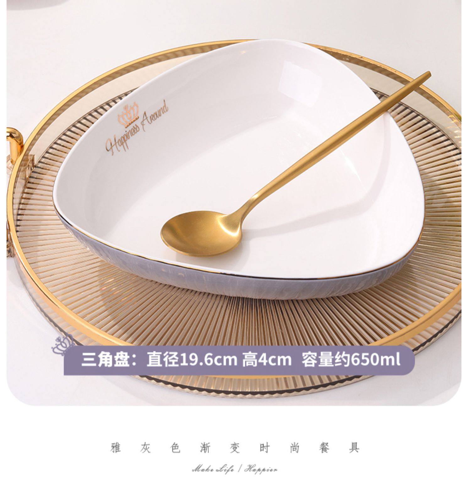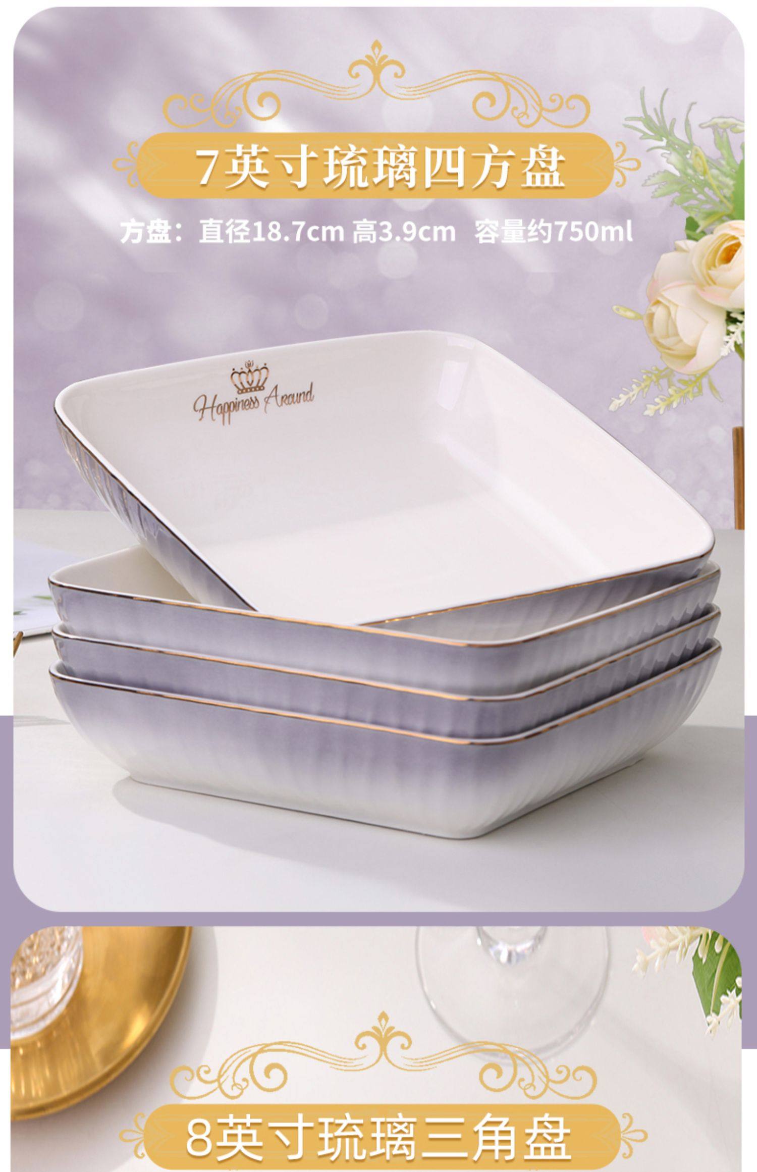 陶瓷碗家用欧式金边可微波碗盘组合加厚防烫面碗餐具 English | 投诉