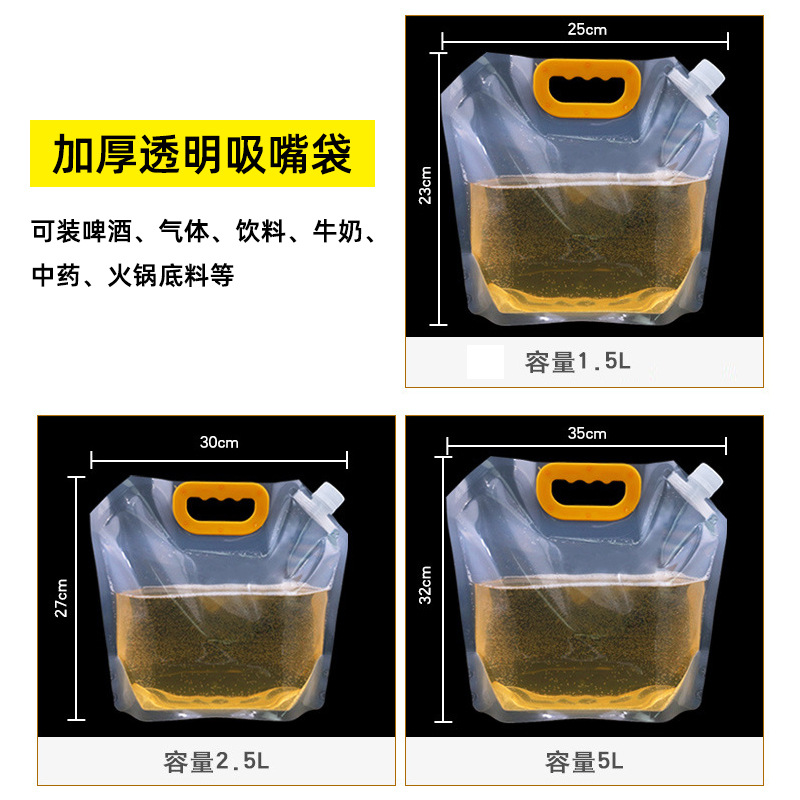 手提啤酒包装袋 精酿果汁折叠水袋 一次性密封透明自立吸嘴袋批发