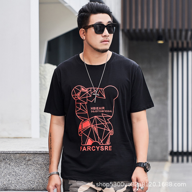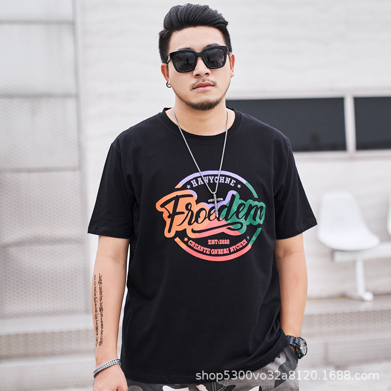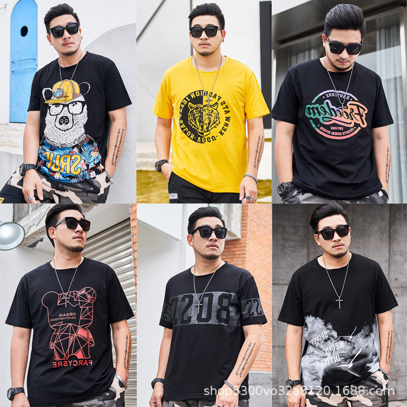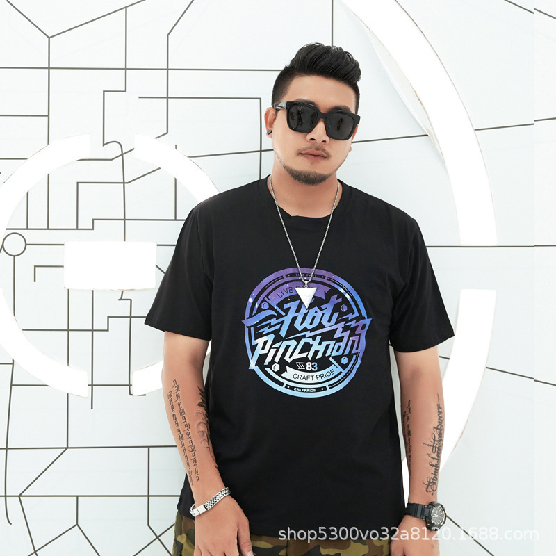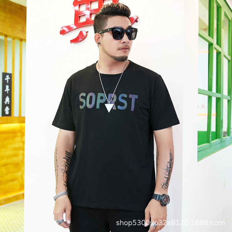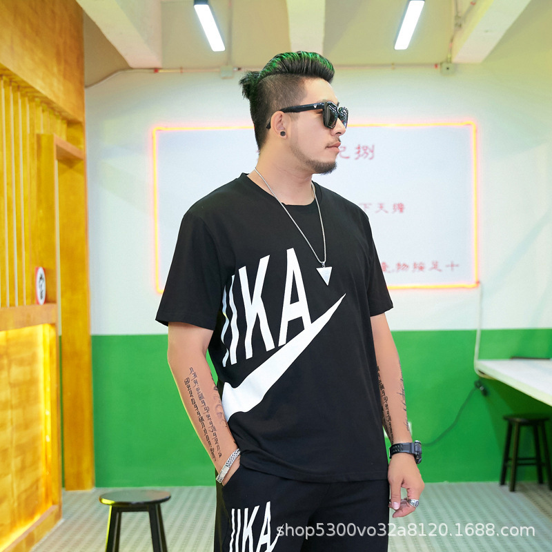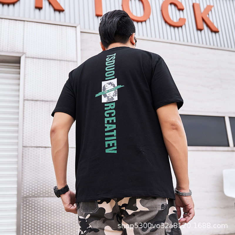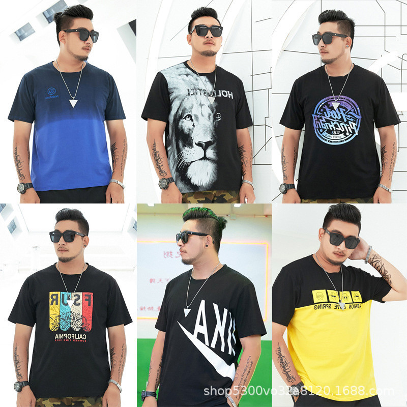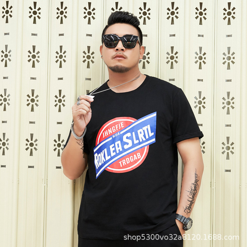 大码男装短袖T恤夏季潮牌加大宽松肥佬休闲纯棉半袖外贸地摊批发