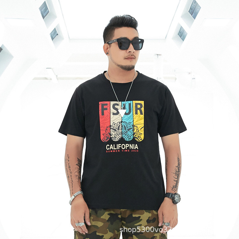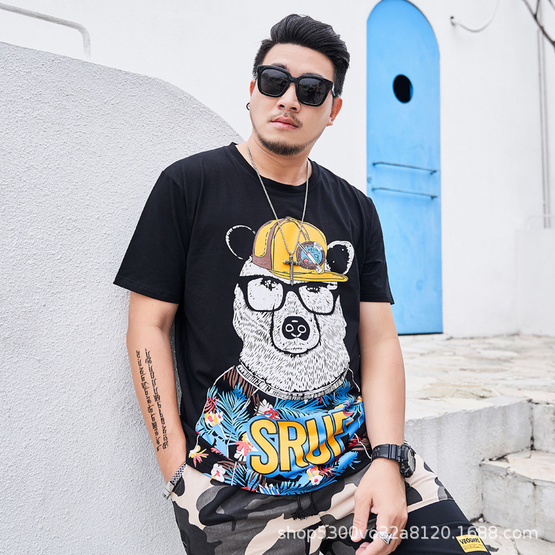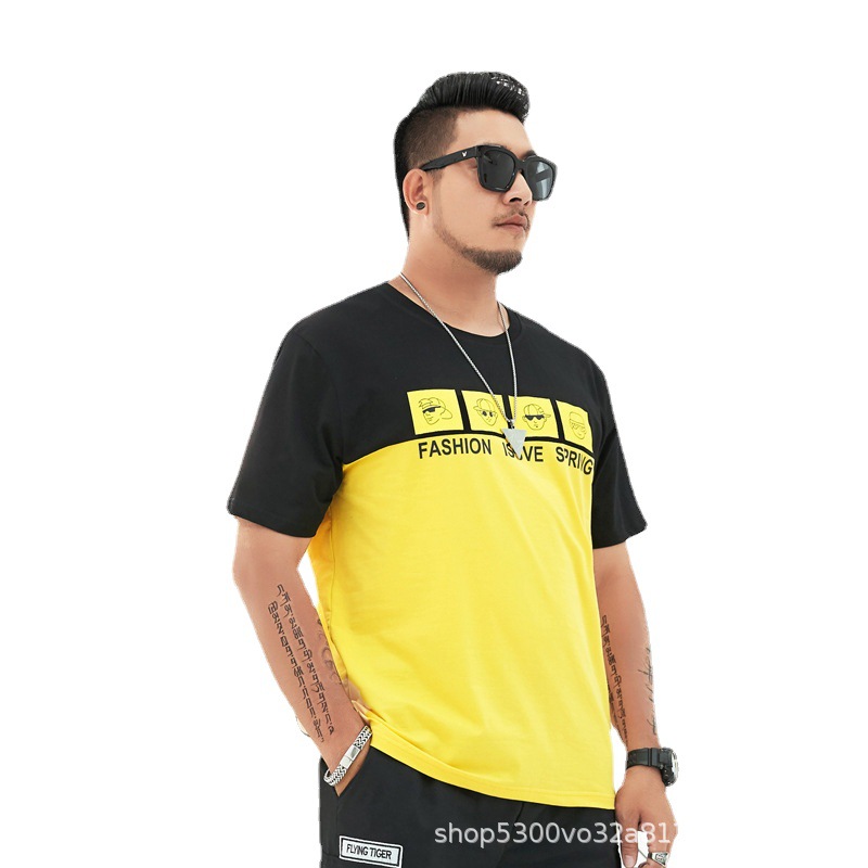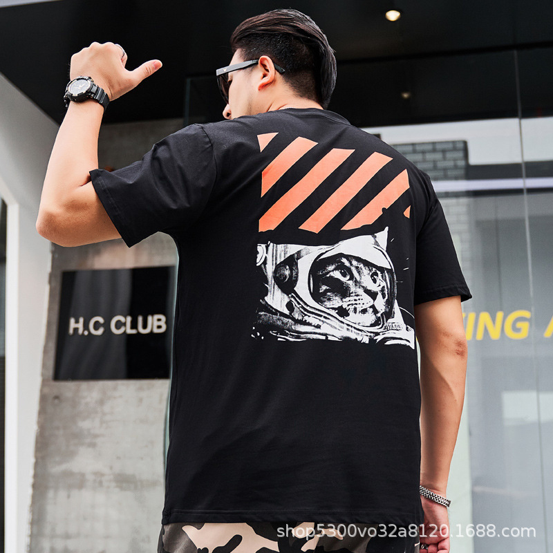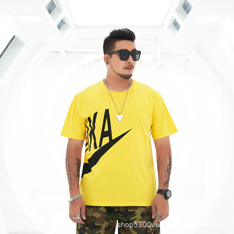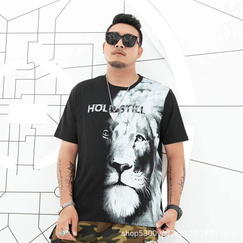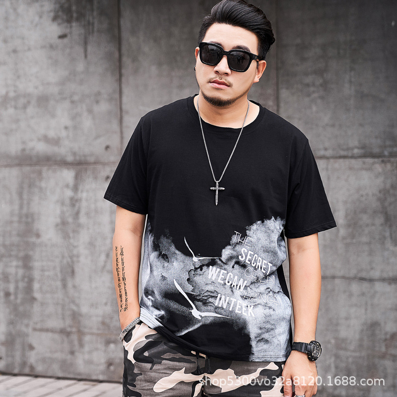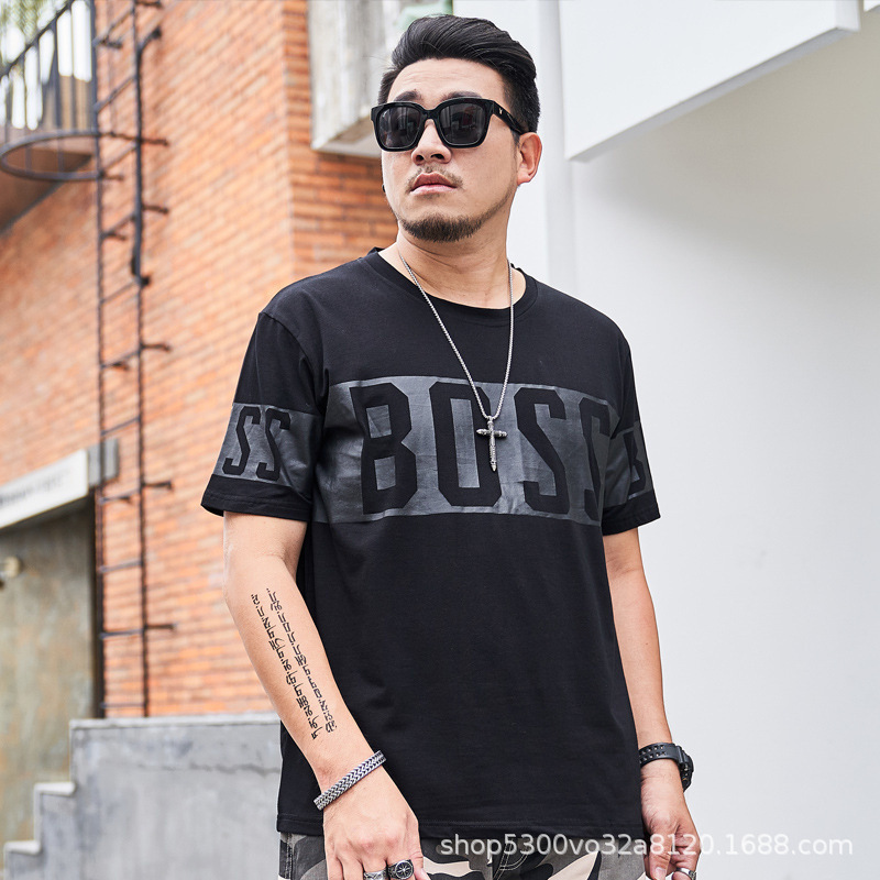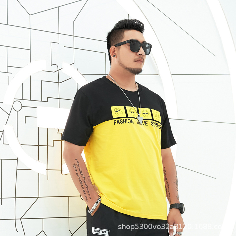 大码男装短袖T恤夏季潮牌加大宽松肥佬休闲纯棉半袖外贸地摊批发